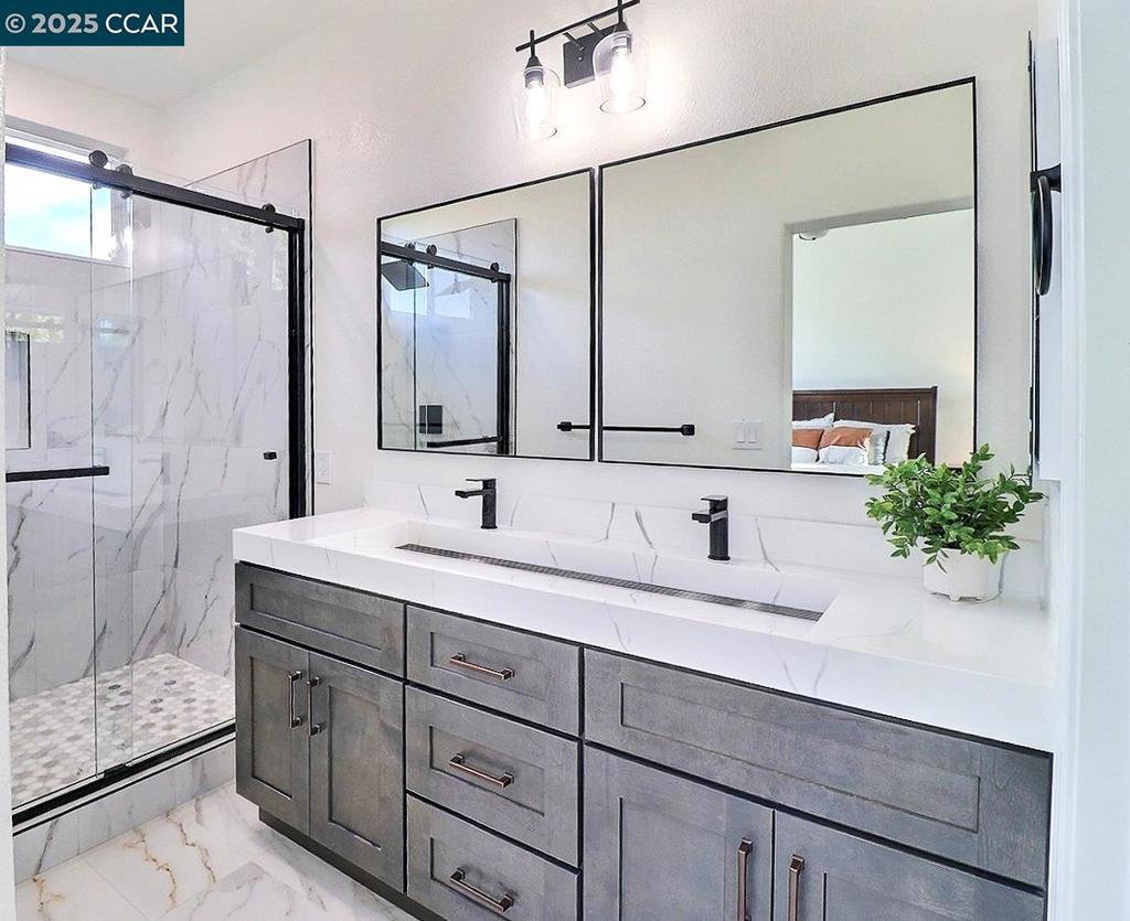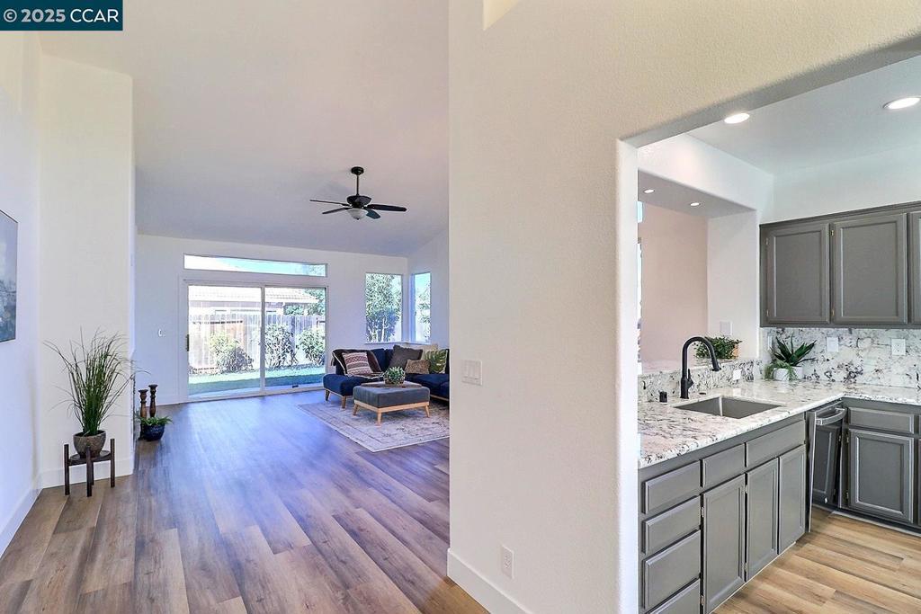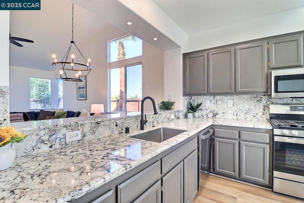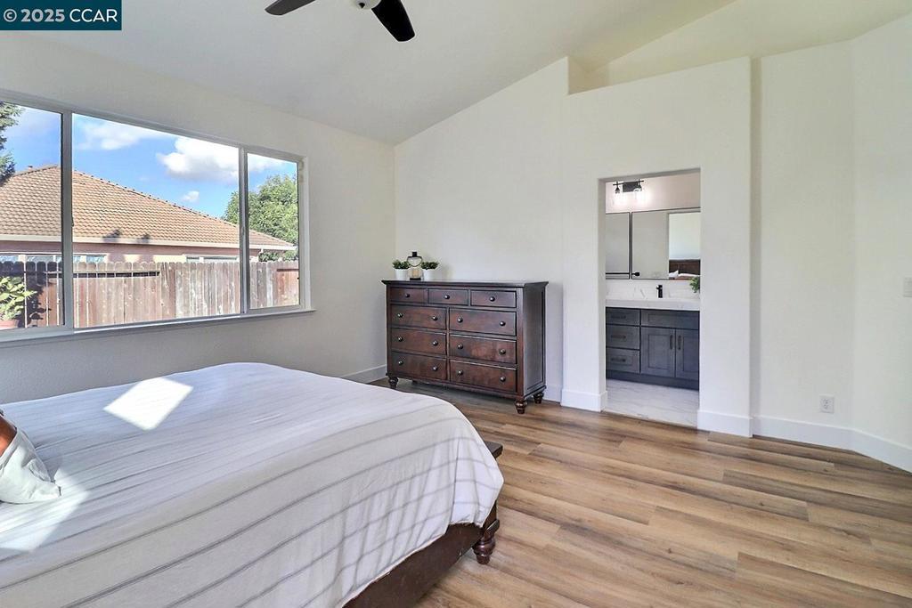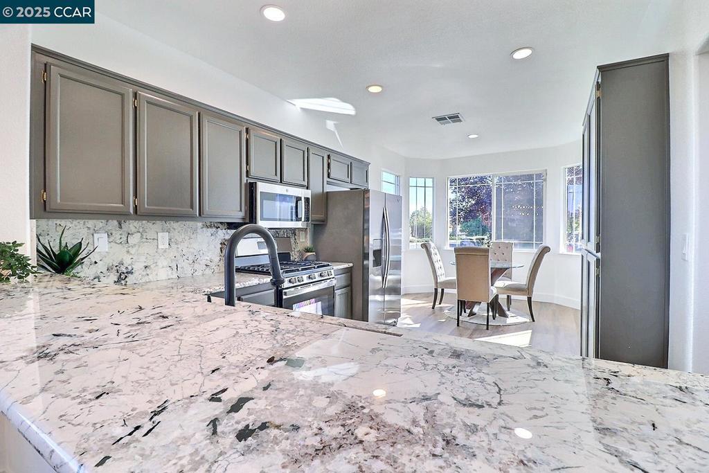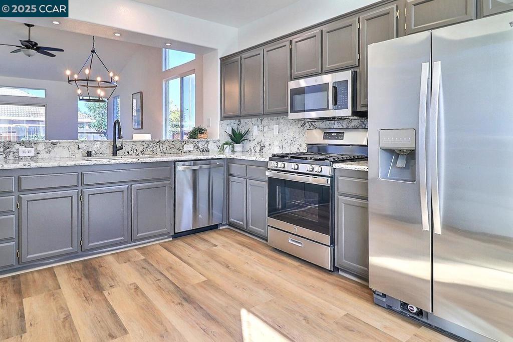 ||OPEN HOUSE 10/18 1-3pm||Gracefully set behind a sweeping front lawn, this exquisitely reimagined residence blends modern elegance with timeless comfort. Inside, neutral luxury vinyl plank flooring flows throughout a light-filled layout enhanced by fresh designer paint, recessed lighting, and meticulous attention to detail. The gourmet kitchen impresses with sleek contemporary cabinetry, granite countertops, a deep stainless-steel tub sink, gas range, and elevated microwave that maximizes workspace. A spacious pantry, sun-drenched breakfast nook, and stylish bar counter open seamlessly to the dining area and grand family room, crowned by vaulted ceilings, clerestory windows, and a sophisticated gas fireplace. The primary suite is a serene retreat featuring a spa-inspired bath with dual vanity, rainfall shower, and private water closet—refined finishes are mirrored in the hall bath. A dedicated laundry room with custom cabinetry leads to the finished garage. Expansive sliding doors reveal a tranquil patio overlooking the effervescent wrap-around grounds, ideal for entertaining, gardening, or play. A rare opportunity to experience this exceptional residence, perfectly positioned near scenic trails, parks, schools, shopping, dining, freeway access, and BART.
