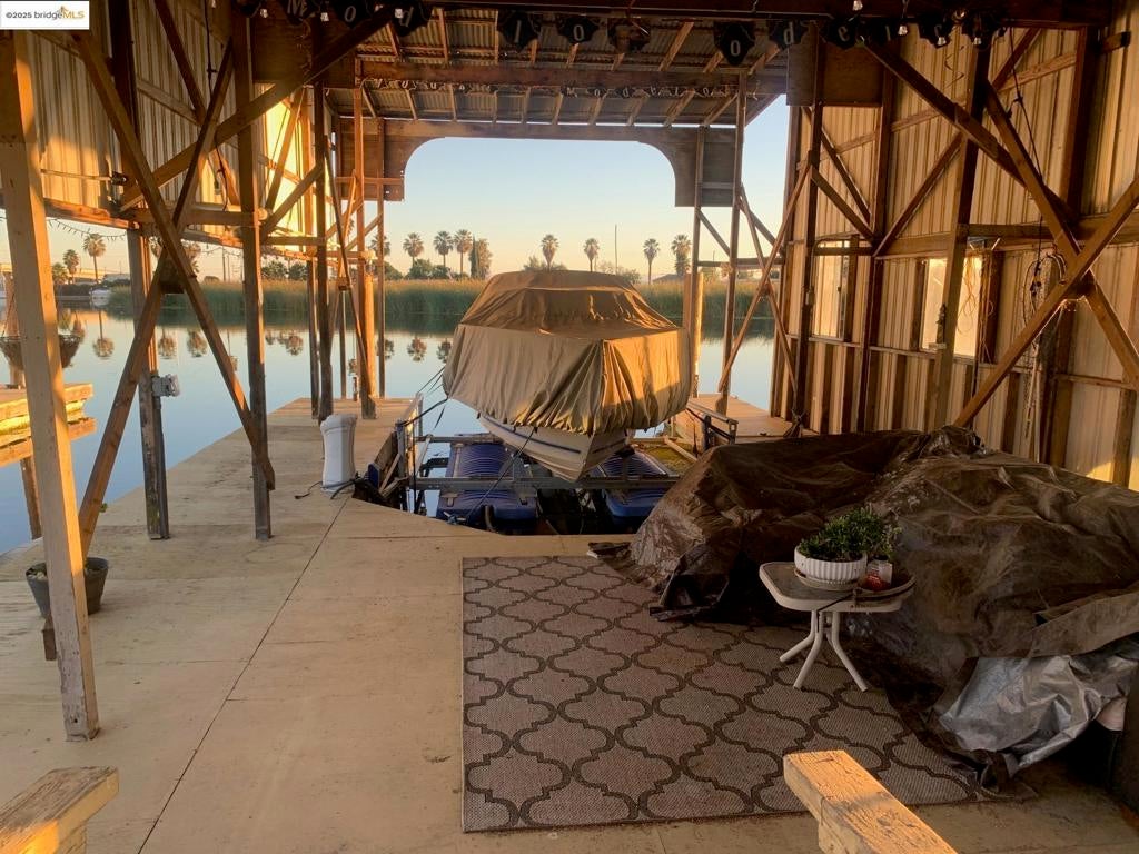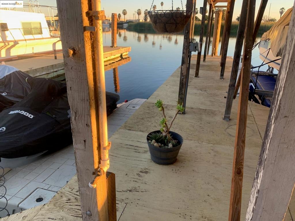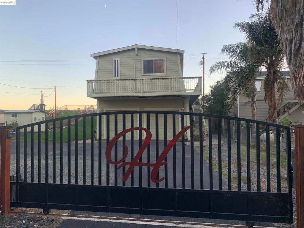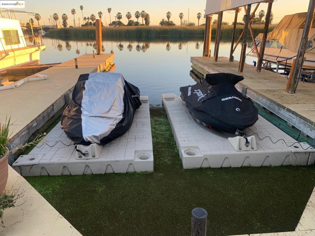 Waterfront Home with Solar, Dock, and 2 Beds / 3 Baths, possible 3rd bedroom or Den off of the downstairs bedroom. 1,369 sq ft of living space on a 8,500 sq ft lot. There are two mini split systems (upstairs and downstairs) for air conditioner and heating. Newer solar panels with four years left on payments. Primary bedroom upstairs with two large walk in closets. Flooring is plank-style in main areas, carpet in bedrooms. Other features: Reverse osmosis drinking water system, Redone deck with new pilings, Covered boat berth + dock with fresh water and lights, Automatic entry gate, Two-car garage with high ceilings, Updated electrical panel, French drains for drainage Move-in ready and great for entertaining or relaxing by the water.