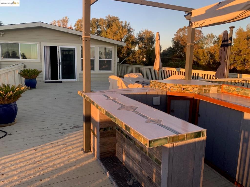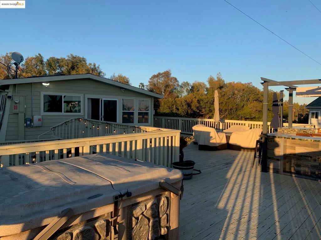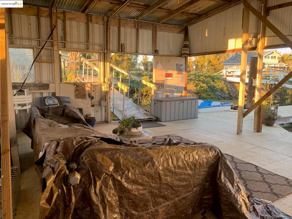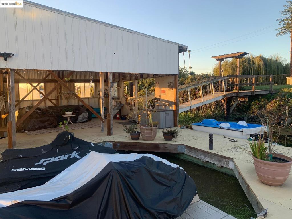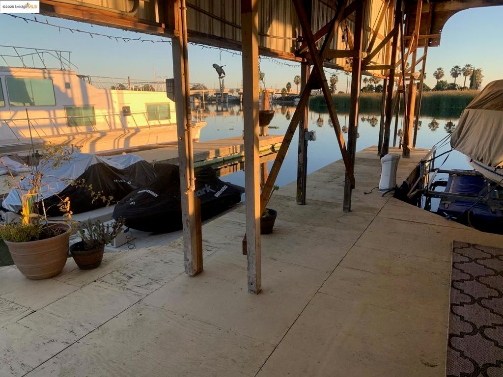 Waterfront Home with Solar, Dock, and 2 Beds / 3 Baths, possible 3rd bedroom or Den off of the downstairs bedroom. 1,369 sq ft of living space on a 8,500 sq ft lot. There are two mini split systems (upstairs and downstairs) for air conditioner and heating. Newer solar panels with four years left on payments. Primary bedroom upstairs with two large walk in closets. Flooring is plank-style in main areas, carpet in bedrooms. Other features: Reverse osmosis drinking water system, Redone deck with new pilings, Covered boat berth + dock with fresh water and lights, Automatic entry gate, Two-car garage with high ceilings, Updated electrical panel, French drains for drainage Move-in ready and great for entertaining or relaxing by the water.