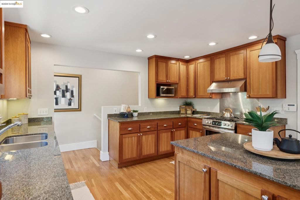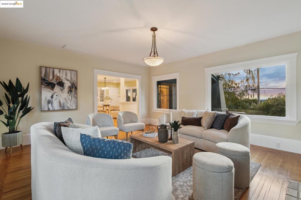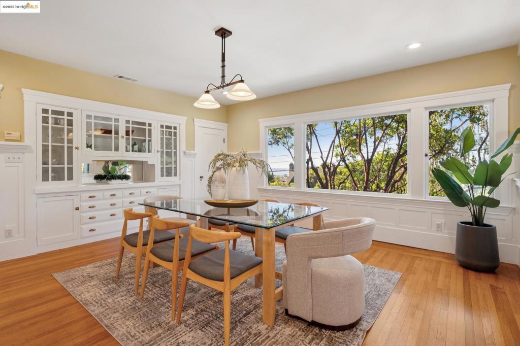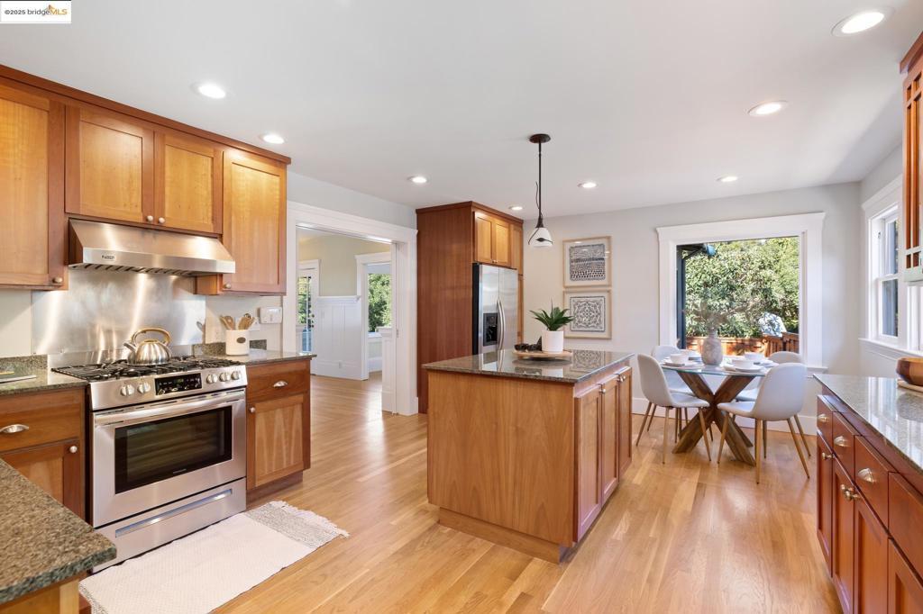 Home for the holidays! Welcome to 815 Spruce St, a 4 bedroom, 2-1/2 bath North Berkeley beauty. Built in 1923, the home was thoughtfully restored and updated in 2001 and has been meticulously maintained since. You'll be instantly impressed by the generous scale of the rooms, from the wide dining room with original built-ins to the welcoming living room, featuring a gorgeous tiled fireplace surround, and the enormous eat-in kitchen featuring stone countertops, stainless appliances, solid cherry cabinets, and plenty of room for everyone to help prep your holiday meals. West-facing rooms enjoy a partial SF Bay & Bridge view, perfect for post-revelry viewing. Excellent single-level layout, with all bedrooms and baths on the main floor, plus level-in entry from Regal Road. The floorplan was expanded to the lower level in 2001, comprising an additional permitted ~745 sq ft of flexible living space w/separate entrance - family room, office, guest quarters, possible ADU*! Newly fenced and leveled yard area adds to outdoor space and privacy. Mature landscaping, including legacy live oak trees that anchor the corner. Convenient to transportation and Berkeley's great amenities, including Solano Ave and North Shattuck shopping and dining corridors, UC Berkeley, Tilden Regional Park.