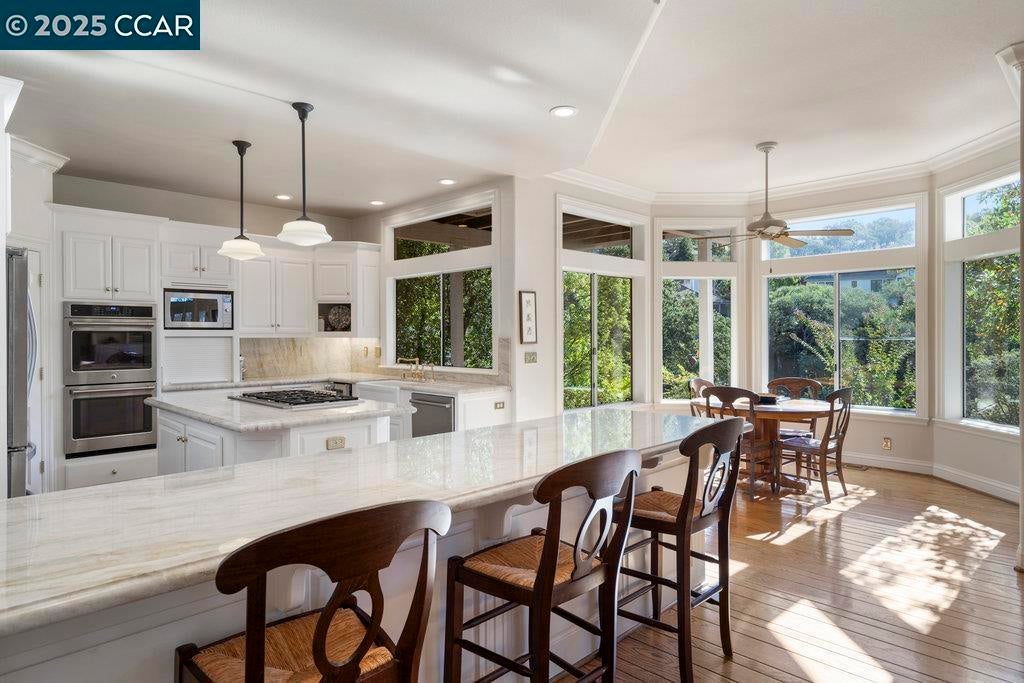 Welcome to 3109 Stonegate Drive, an elegant Alamo residence offering approximately more than 4400 square feet of refined living space in the sought-after Stonegate neighborhood. Set at the top of the circle with peaceful canyon and hillside views, this home features 4 bedrooms, 4.5 baths, and a traditional oak-paneled office that could serve as a downstairs 5th bedroom. The updated kitchen opens to spacious living and entertaining areas with soaring ceilings and abundant natural light. Upstairs, a large bonus room provides flexibility for work, play, or guests. The backyard is a private retreat with a grotto-style splash pool, view deck, level lawn, and a magnificent heritage oak as its centerpiece. A three-car garage completes this exceptional property, blending privacy, charm, and functionality in a premier Alamo setting.