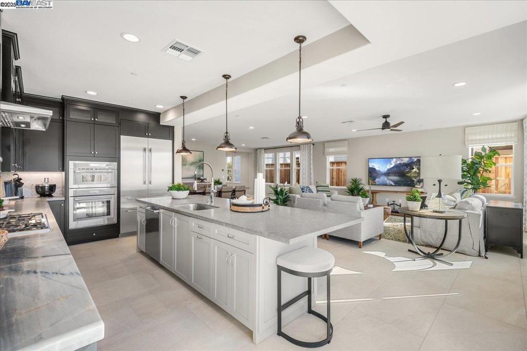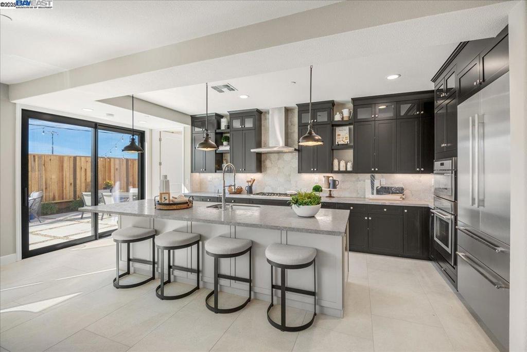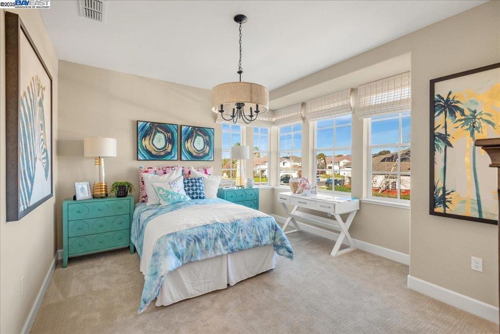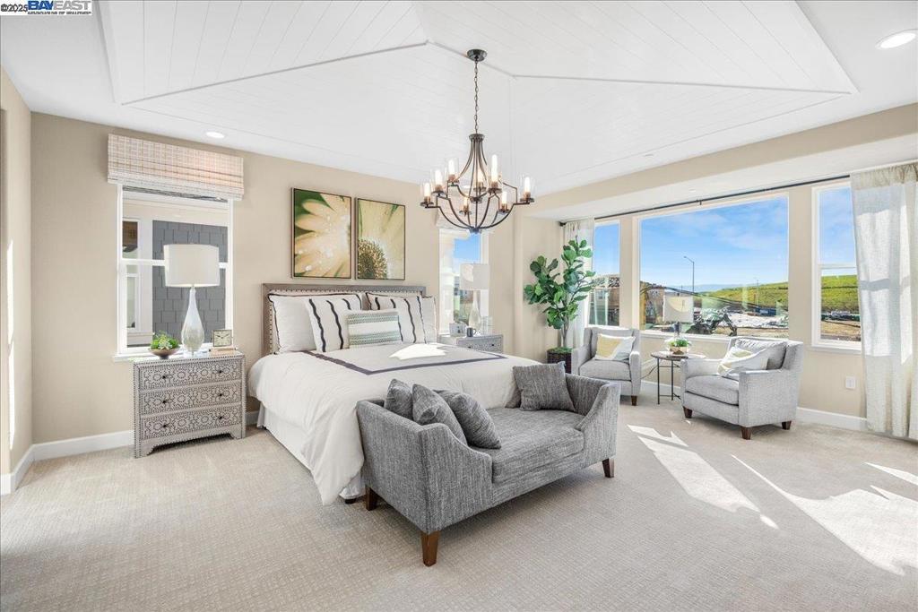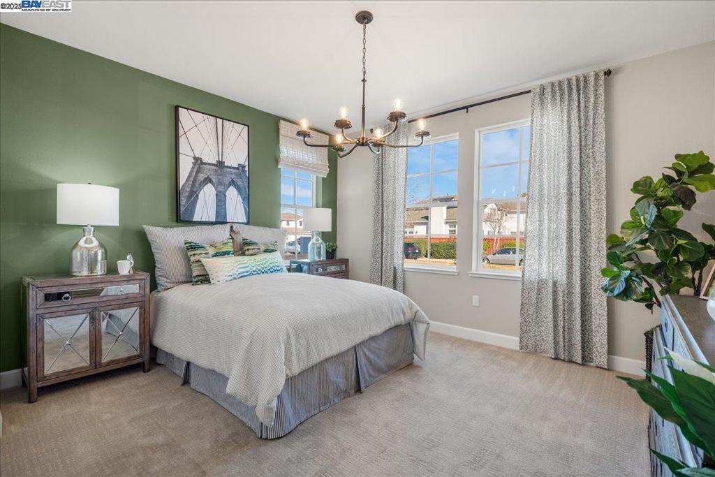 New Construction, exquisite luxury living can be yours at Carmel Pointe in Union City. Ideally located minutes from I- 880 and the Dumbarton and San Mateo Bridges right next to the iconic Sea Breeze Park with trails and bay views. Popular Juniper floor plan is uniquely designed with a first-floor bedroom and bath, large family room, dining room, kitchen, home office and 3-car garage. Enjoy an elaborate gourmet kitchen with center island boasting gorgeous upgraded quartz counters, stainless steel Bosch appliances, gas cooktop and 42” built in Bosch refrigerator. The open airy living area has an oversize sliding door to the fully landscaped rear yard. Upstairs you have a spacious master suite with soaking tub and separate shower, a loft, two secondary bedrooms and two baths. Laundry room comes with both gas and electric dryer hookup, a full bank of cabinets and laundry sink. The builder has included over $150,000 in designer upgrades including custom closet organizers, designer selected upgraded flooring, carpet, bath counters, fully landscaped rear yard with custom patio ready for you to enjoy. See sales agent for complete list of upgrades. Sales office is located at 32616 Carmel Way, Union City. HOA Fees incl. front yard landscape maintenance. Turnkey home, close in 30 days!