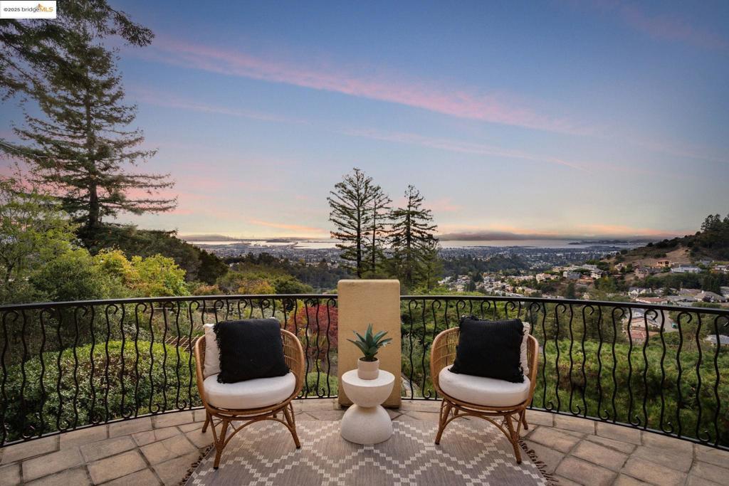 Experience jaw-dropping panoramic views of the San Francisco skyline, Golden Gate Bridge, Bay Bridge, and shimmering bay waters from this one-of-a-kind Montclair hillside estate. Perched atop a tranquil street, 6257 Virgo Road offers over 5200 sq ft of refined luxury on a lushly landscaped 14544 sq ft lot. This architectural masterpiece features four spacious bedrooms, three and a half spa-inspired baths, a home theater, gym or flex space, and seamless indoor and outdoor flow designed for elevated living A grand dedicated office provides the perfect remote work sanctuary, flooded with natural light and designed for focus and comfort. The expansive chef’s kitchen opens to formal living and dining rooms with soaring ceilings. The showstopping primary suite includes a fireplace, a peaceful sitting area, and a boutique-quality walk-in closet with exquisite custom built-ins that will impress even the most discerning connoisseurs A seasonal creek flows gently through the backyard, crossed by a charming handcrafted bridge, creating a romantic setting for morning coffee or golden hour reflections. Owned solar Tesla Powerwalls, hardwood floors, and three gas fireplaces complete this unforgettable offering. This is not just a home, it is an experience.
