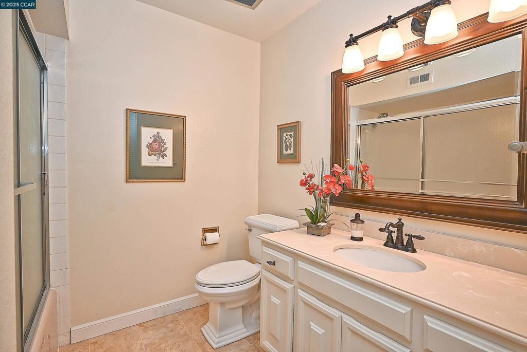 Second bathroom, laundry hookups, and a lovely open balcony to enjoy the view of the hills over the buildings below. Enclosed wrap provides added storage with bonus room for office or crafts. Wood-look plank flooring in entry and kitchen. Like-new carpet in bedrooms, living room, dining room, and wrap. There is a long ramp or a lot of stairs to get to the unit, but it's worth the climb, and there are no other 2 bath units even close to this price!