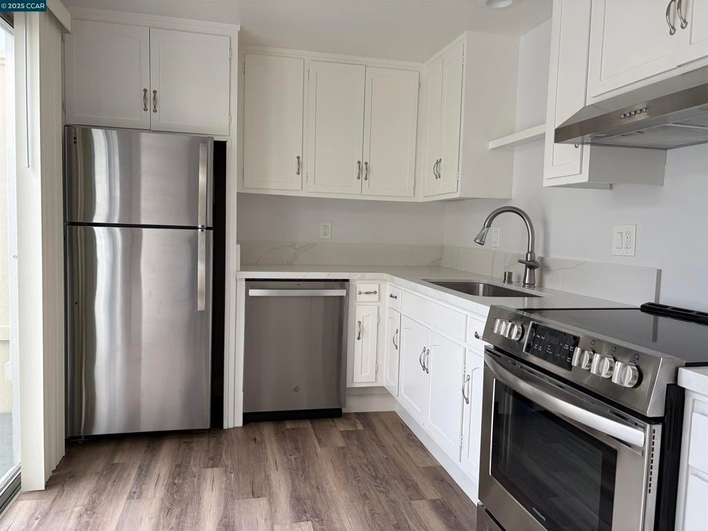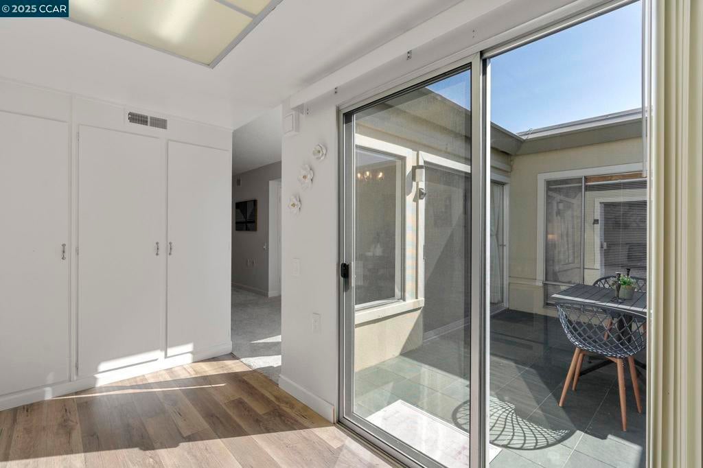 Welcome to Rossmoor, a premiere residential community for the active seniors. Level in, no steps to upgraded end unit, 2bed/1bath with stall shower, full size washer and dryer. Two glass sliding doors provide access to the spacious atrium with ample room for outdoor relaxing and dining, filters in offers day light to dining room, kitchen and primary bedroom. Carport is conveniently located steps away with storage closet. Stainless steel refrigerator and glass top electric range in kitchen with a built-in desk for menu planning. Location is near the Gateway and Hillside Clubhouses for a range of amenities, sports and club meetings. The community provides a fitness center, pools, tennis, pickleball, bus transportation, golf with extra fees.