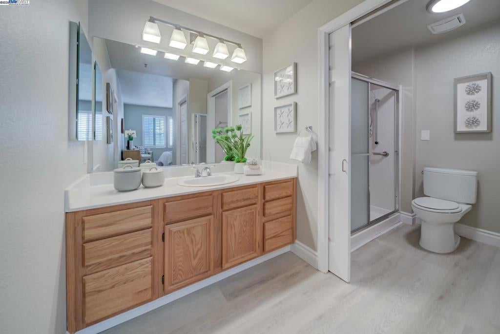 Welcome to this beautiful Waterford condominium in the heart of the prestigious 55+ Rossmoor community. Bright and inviting, this home is filled with natural light and features modern luxury vinyl plank flooring throughout -offering an elegant alternative to the carpet found in most upper-floor units. Plantation shutters add both charm and privacy, while the private balcony is perfect for morning coffee or evening relaxation. Enjoy effortless living with the convenience of an in-unit washer and dryer, spacious walk-in closets, and abundant storage - including a private storage unit around the corner. The unit is ideally situated near the elevator, and your assigned parking space #136 is just steps away from both the elevator and garage entrance. Every detail has been designed to make daily living easy and accessible, offering the perfect blend of comfort and convenience. Residents of The Waterford enjoy daily meal service and weekly housekeeping, access to exceptional amenities: social events, art classes, a state-of-the-art fitness center, swimming pool, on-site movie theater, two dining halls, beauty salon, library, and games rooms. Experience the best of Rossmoor living at The Waterford!
