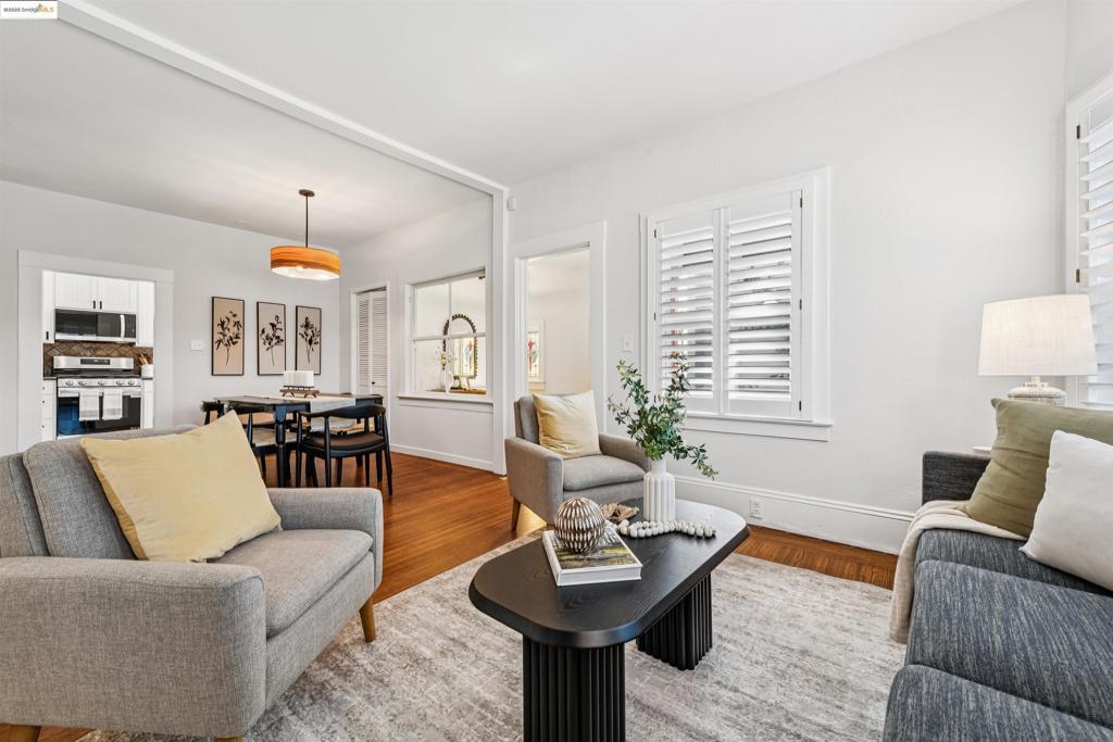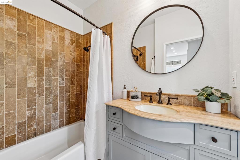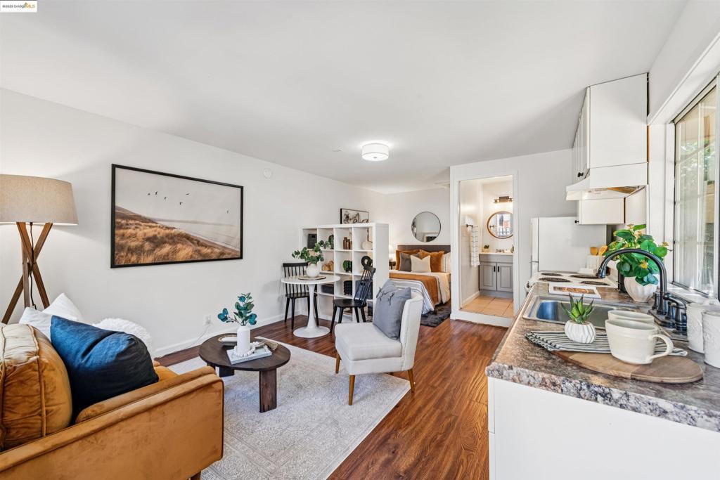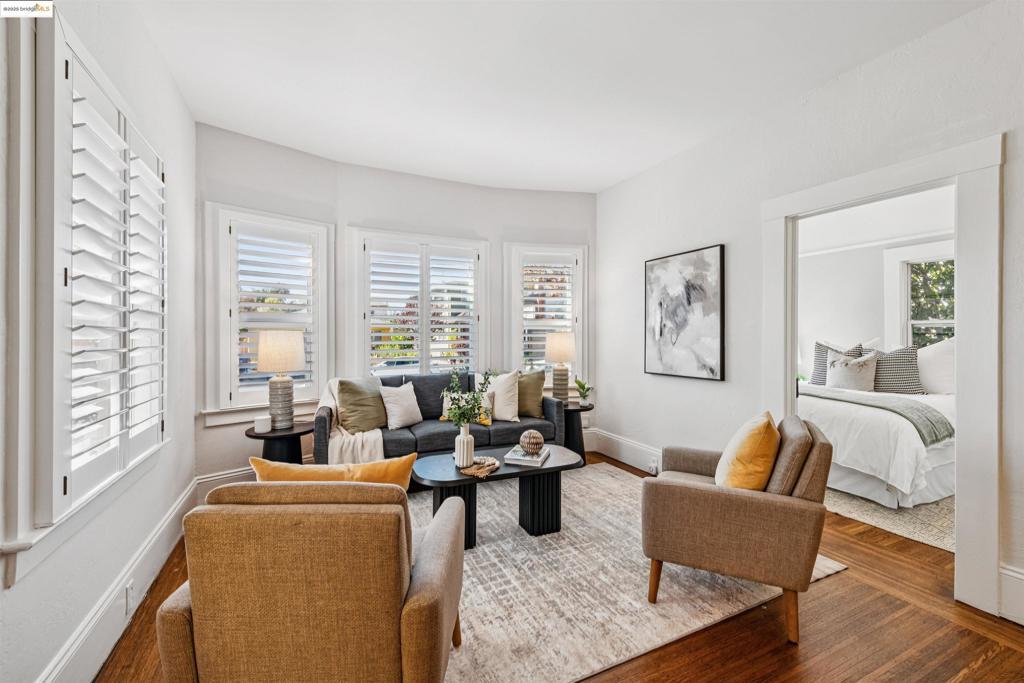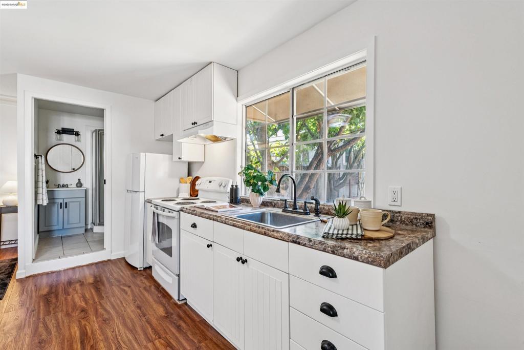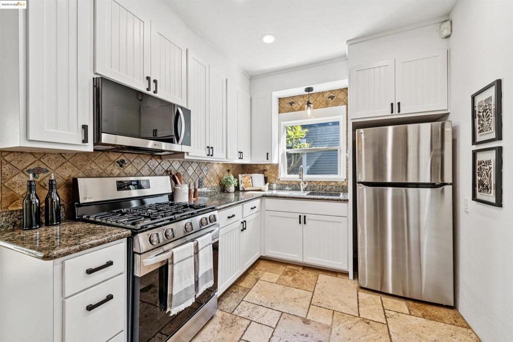 Saunter down this small fairytale street in Alameda’s coveted East End and you’ll come upon this artistic Craftsman bungalow: 2839 Washington Street. Full of Craftsman details and creative touches, it just says “you’re home.” A novel entry brings you to the light-filled living room, dining room with bay windows. The primary and guest bedrooms open onto their own lush greenery. The updated farmhouse kitchen says "come on in" with its off white Shaker style cabinets, stone countertops and new appliances That takes you to another rather big plus: an upper floor “great room" with an extra 515 square feet of space to create your own art room, media room or office. As for pluses ... and added income ... there's a fully oufited studio cottage with its own patio that previously rented for $1750 per month (ADU potential). And that's all set in its good-sized yard with loads of room for gardens, barbecues and friends around the firepit.