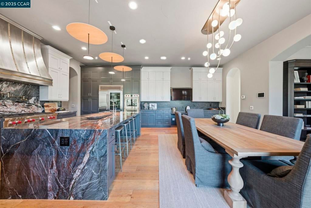 Stunning custom-built estate in one of Danville’s most exclusive country settings in the El Pintado area. This 2022 residence offers 7,470 sq. ft. of refined living on over an acre, featuring 5 bedrooms, 6 baths, 3 stories and multiple living spaces for entertaining or everyday comfort. The gourmet kitchen boasts top-of-the-line appliances, custom cabinetry, and a butler’s kitchen. The luxurious primary suite includes a spa-inspired bath, private terrace, and a hidden door in the walk-in closet leading to a private entertainment room. Exceptional craftsmanship, multiple fireplaces, and a 4-car garage add to the appeal. The expansive backyard offers great potential with a pool project that was started but not completed (renderings available) and includes a beautiful private vineyard producing grapes to make your own wine—perfect for enjoying your own slice of wine-country living. Conveniently located near downtown Danville, top-rated schools, and amenities.