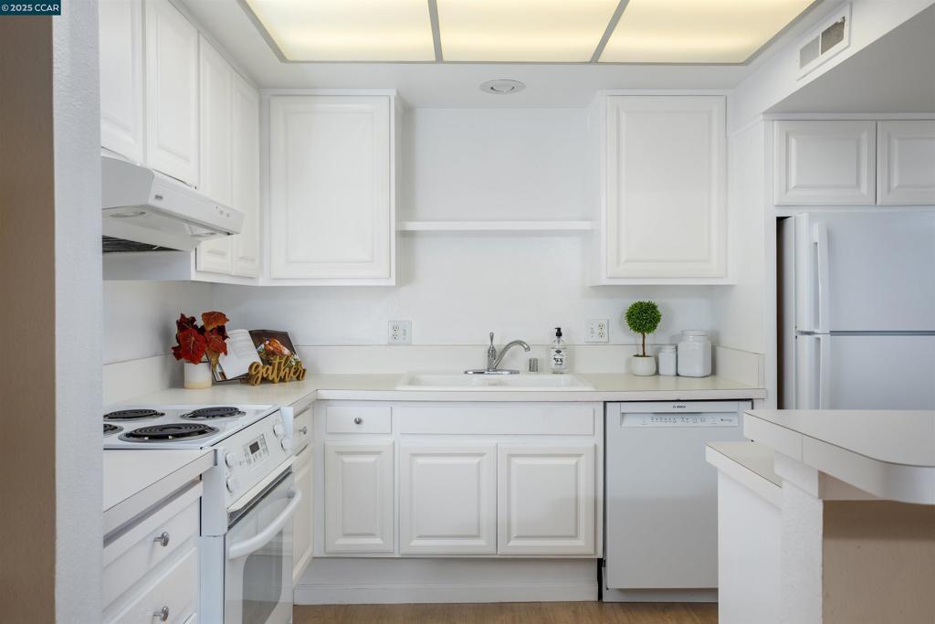 Cheery lower level Sonoma model features 2 bedrooms and 1 bathroom and a generous open balcony. This popular floor plan is an open-concept design that flows seamlessly between the spacious living room, dining room and kitchen. This lovely manor has many upgrades to enhance the warm and homey feel of the property, including a built-in bookcase in living room for additional storage and display opportunities; Pergo flooring; smooth ceilings; paneled doors; plantation shutters in the bedrooms; an updated bathroom with a stall shower; and a stacked washer/dryer unit. GREAT PRICE and a wonderful location in a serene, park-like entry with abundant parking. Close to many of Rossmoor's premier amenities, including the golf course, Event Center, Creekside Grill and clubhouse, and the Dollar clubhouse and swimming pool. Plus, you'll be just moments away from nearby shopping, dining, and entertainment options in downtown Walnut Creek and Lafayette. Enjoy comfort, convenience, and community in northern California’s premier 55+ community. Incredible opportunity to bring your imagination to refresh this inviting co-op and make it your own!