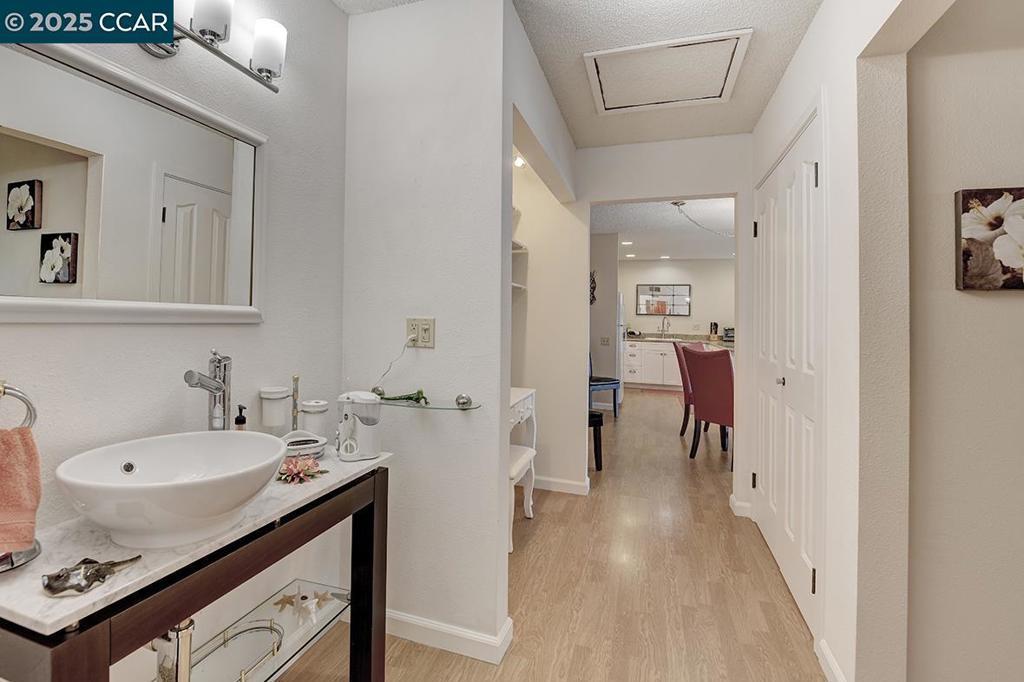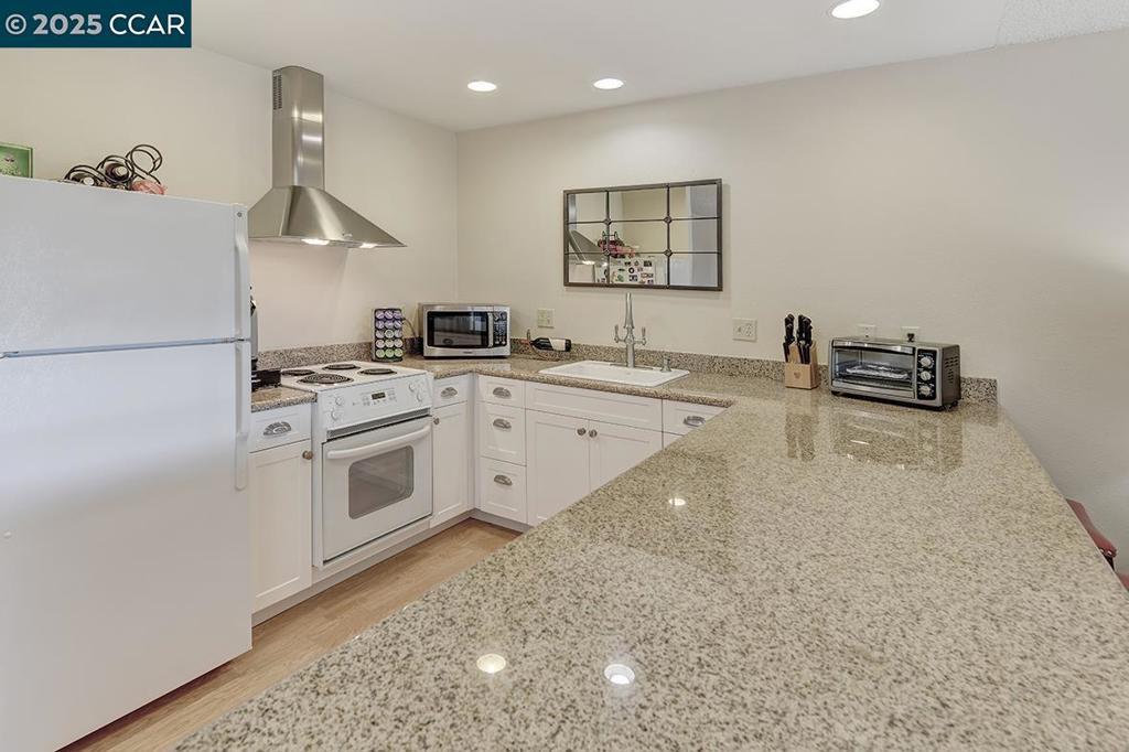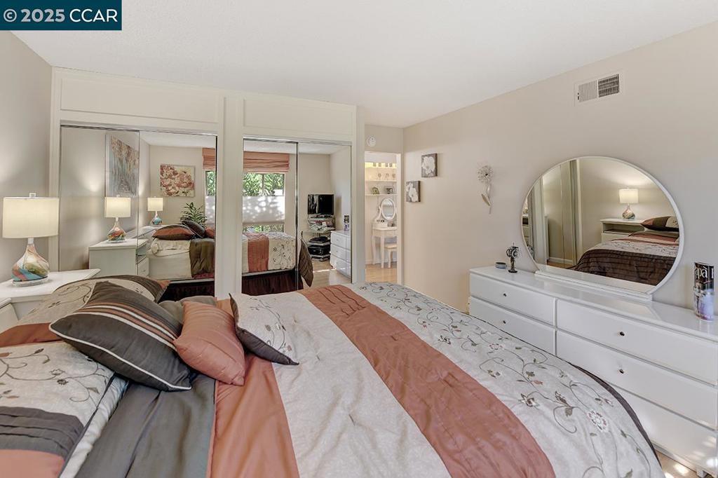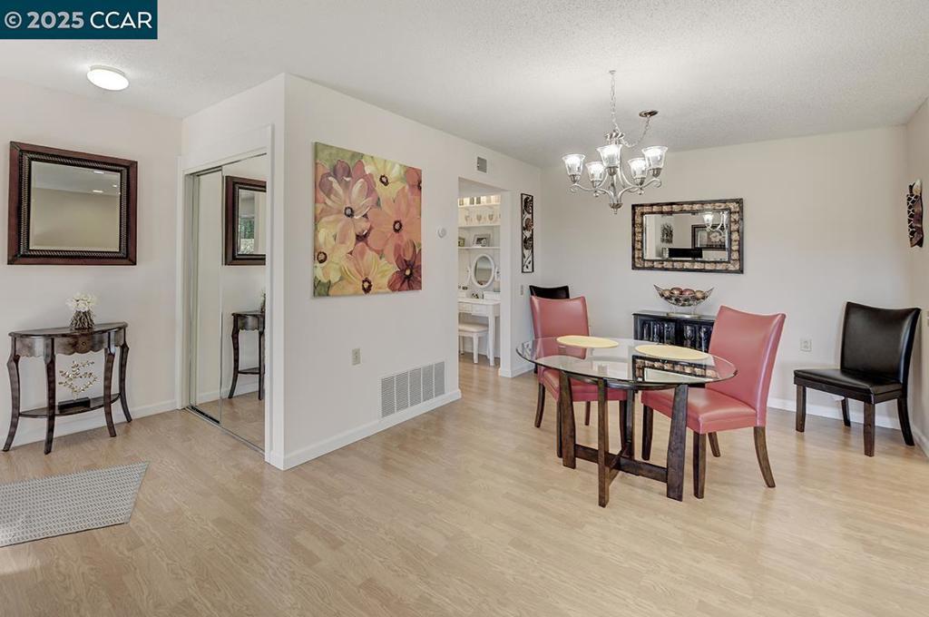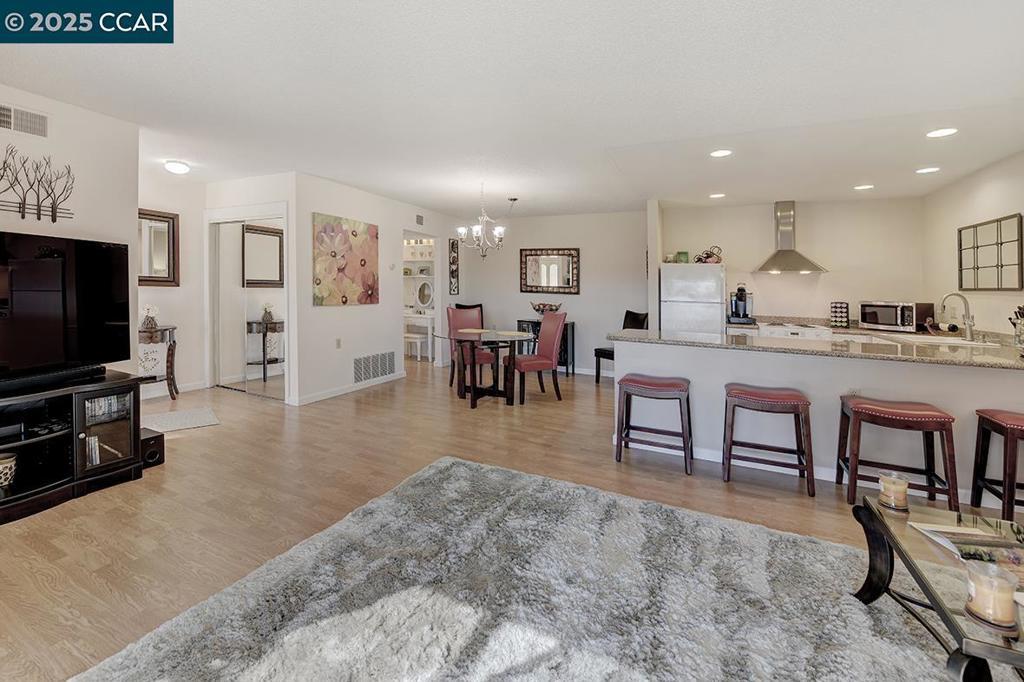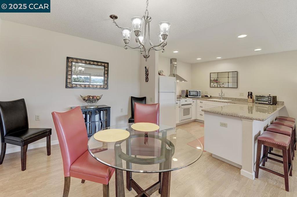 Location, location, location! Situated at the very end of the entry, atop a ridge overlooking downtown Walnut Creek and Mt. Diablo. One of a kind Mendocino model, corner unit with no upstairs or downstairs neighbor. Enjoy the unobstructed, breathtaking view from large private patio (200+SF), nestled under a pergola. Single-level, level-in property with no stairs whatsoever. The kitchen has been remodeled to create a beautifully open floor-plan. Newer cabinets with large pull-out drawers and granite counters. Hard surface flooring throughout. Updated bath, bedroom with no shared wall. Steps to carport with the maximum amount of custom storage, composed of 11 additional, locking cabinets. Views: Ridge