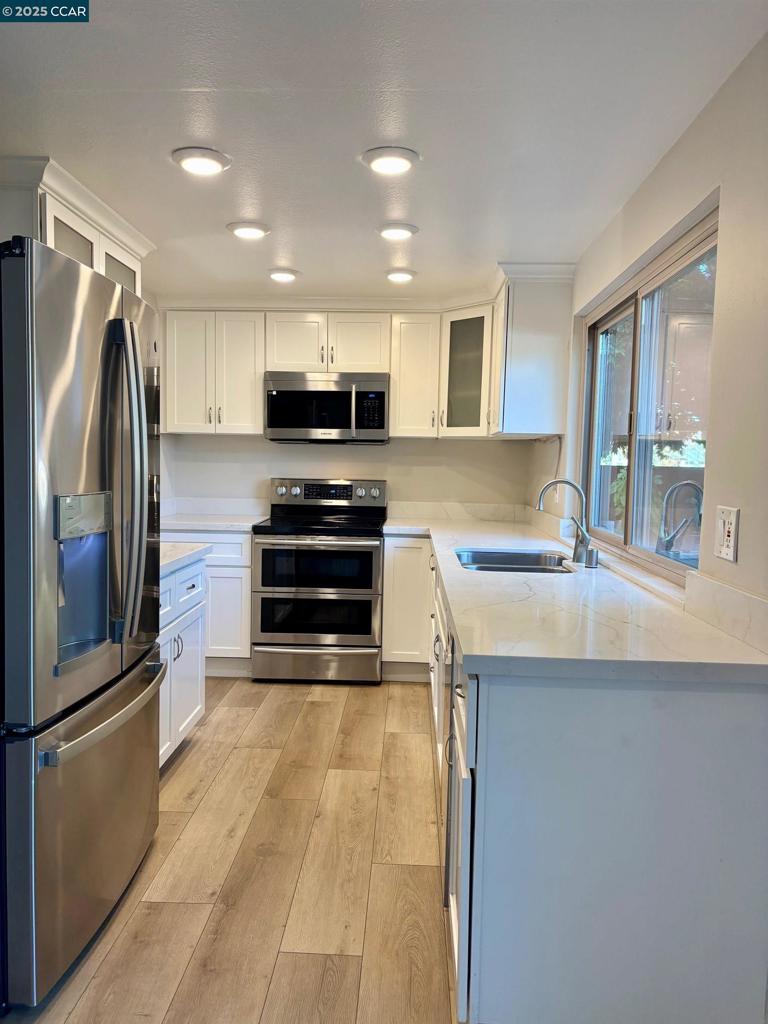 Beautifully updated townhome in Countrywood! Recently updated kitchen with white cabinetry, Quartz counters, stainless steel appliances, recessed lighting and Luxury Vinyl flooring. The living room has a fireplace, recessed lighting and patio door to private rear patio. The dining area has a pantry, adjacent updated half bathroom and full size laundry room. The spacious primary bedroom has 2 closets, ceiling fan and updated full bathroom with dual sink vanity and tile shower. There are 2 more additional bedrooms with a full bathroom that has a shower over bathtub. Many great features include a 2 car garage, Central A/C, laundry room, dual pane windows, Luxury Vinyl flooring, laundry chute and freshly painted interior. The Countrywood townhomes enjoy an amazing location close to Countrywood shopping center, Heather farms park, trails, BART and freeway access. The community has a swimming pool and park like areas to enjoy. See the 3D Virtual tour or call for more info.