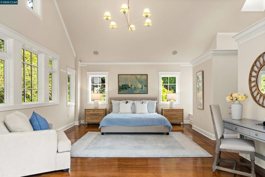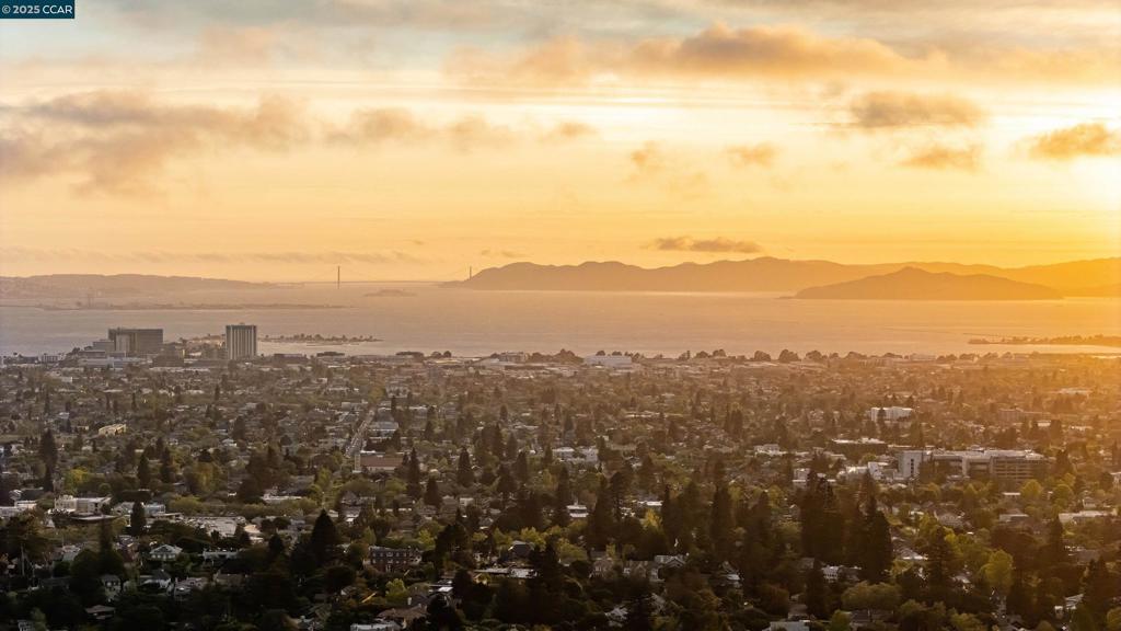 A landscape architect and urban planner designed this one-of-a-kind home on over a half-acre in the Berkeley Claremont Hills, capturing breathtaking views of the Golden Gate and Bay Bridge. The living room—with its vaulted ceilings and hardwood floors—forms the heart of the home, perfect for entertaining. Enjoy formal dining or casual meals in the open-concept kitchen and family room, where French doors open to the garden and pool. The main-level primary suite features a soaring ceiling, private outdoor access, and a spa-like bath with marble finishes, skylights, and dual walk-in closets. Upstairs, two additional en-suite bedrooms boast dramatic bridge views and overlook the open-concept living space below. The lower level includes a spacious family room, home office, gym, wine room, and a fourth bedroom with a private courtyard. Outdoors, mature landscaping by noted designers transforms the grounds into a private botanical garden, filled with color and texture throughout the year. The property also includes a separate 2-bedroom, 2-bath guest house (1,035 sq ft) with a full kitchen and a free-standing timber-frame bonus room. Peaceful and private, yet moments from Berkeley’s cultural and culinary destinations—this is an urban retreat in perfect harmony with nature.