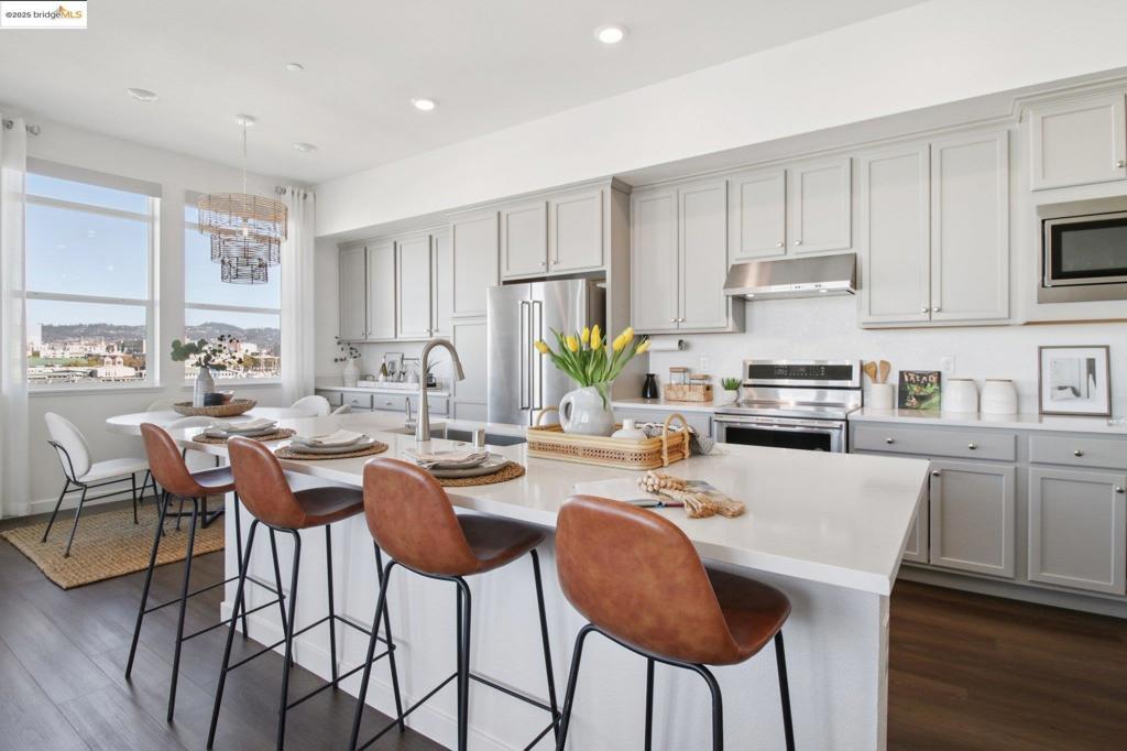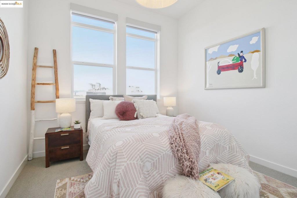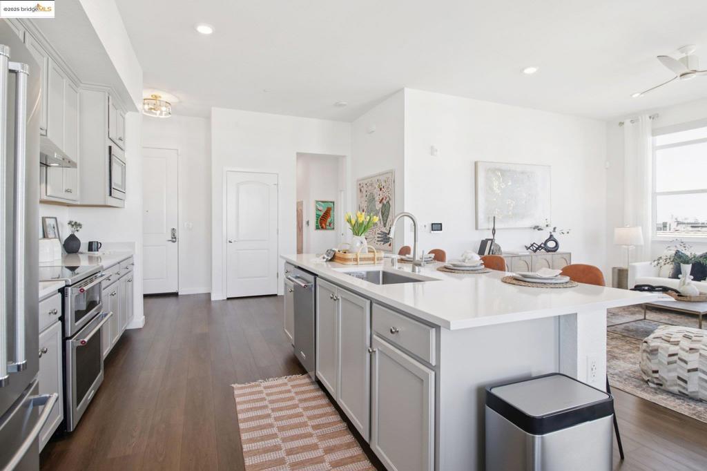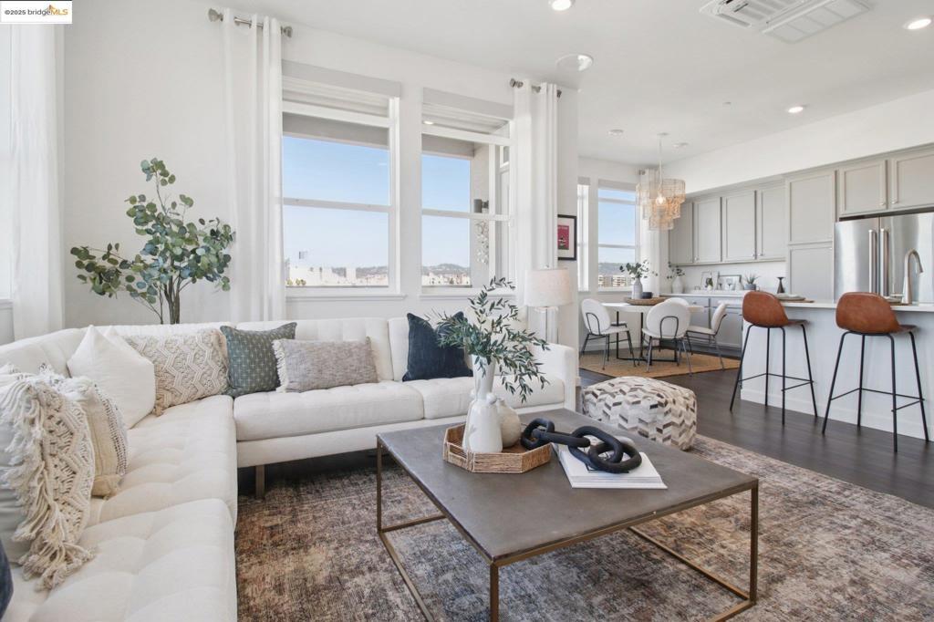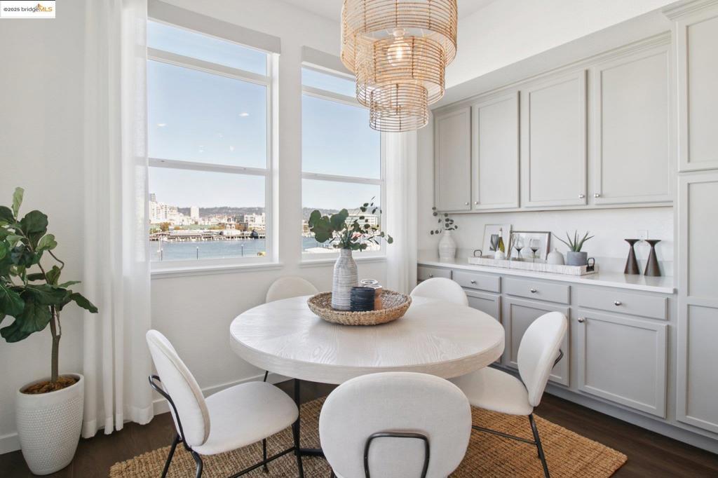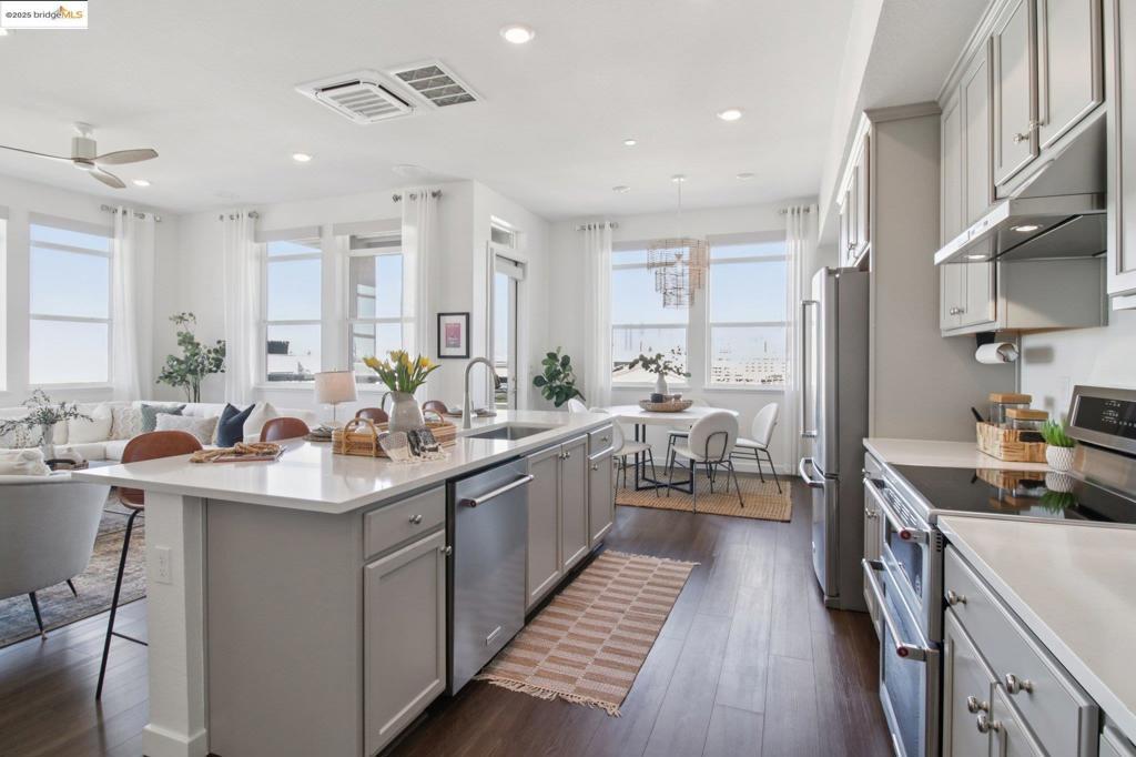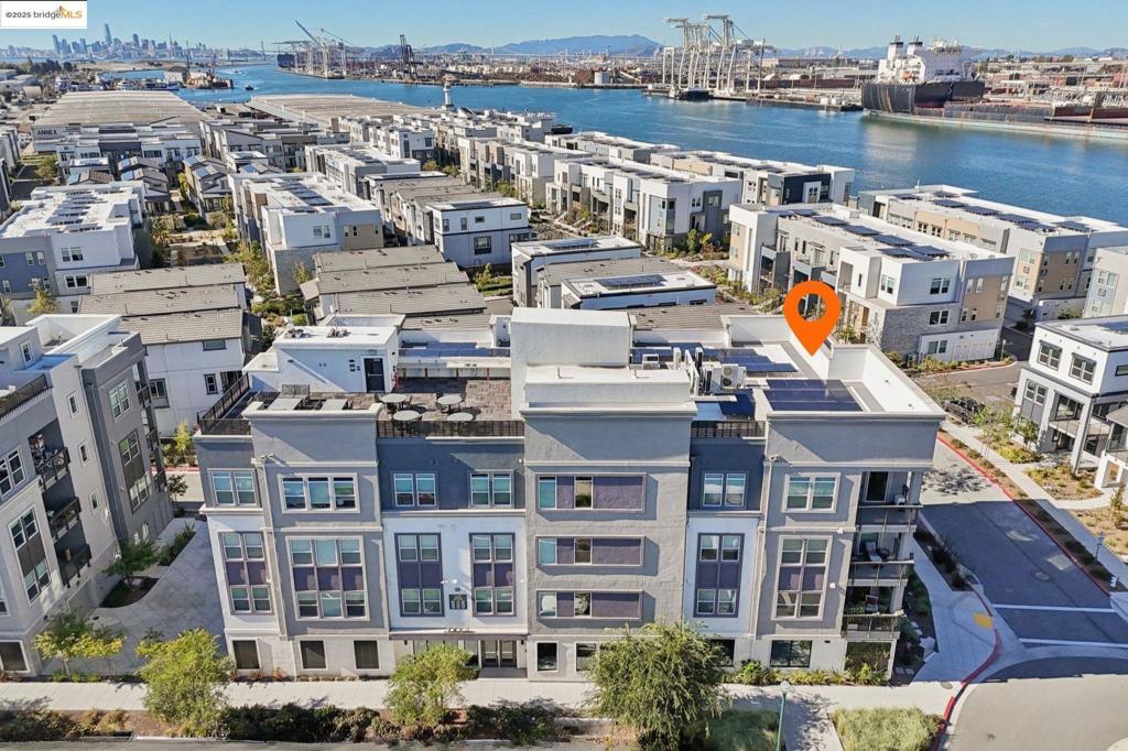 Exceedingly rare opportunity to own the one and only north-facing penthouse at Bay 37 - affectionately known as “The Unicorn.” This single-level, flat-style residence was showcased as the original model home for the community, celebrated for its breathtaking views of both the San Francisco skyline and the Oakland Estuary - unique among all Bay 37 homes. The coveted Plan 4 layout, largest of the flat-style designs, is bathed in natural light and offers an expansive open-concept living area with a chef’s kitchen, oversized island, and inviting breakfast nook flowing seamlessly to a private deck - perfect for morning coffee or sunset views. The elevator-serviced building provides a rooftop deck, secure entry, bike storage, and a private two-car garage. Residents enjoy a waterfront lifestyle with scenic walking paths, a park, picnic areas, playground, and community dock. Conveniently close to Bohol Circle Immigrant Park, Target, Safeway, and local dining. Commuting is effortless with a free shuttle to 12th St. BART, water taxi to Jack London Square, and nearby ferry access to San Francisco. A rare combination of design, light, and coastal luxury - the ultimate expression of Alameda’s modern waterfront living.
