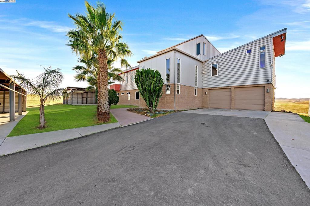 The Midway Compound is a secluded retreat combining the hard lines of an industrial inspired 4412-square-foot cinder block and I-beam fortress with solid steel doors and contemporary appointments. Situated atop a 58-acre private gated estate with omniscient views of the Central Valley, including stunning sunrises and sunsets. The Midway Compound brings together the essence of seclusion, panoramic views, contemporary design, and boundless opportunity to create everything you desire. Ideally located between I580 and 205 with easy freeway access in any direction and just 18 Minutes to the massive Arroyo Park Shopping Center (Safeway Center) in Livermore, and just 3.7 miles to Mt House Elementary School (K-8). You feel like you are out all by yourself on a hilltop estate overlooking the world! But you are really pretty close to all services, schools, etc via very nice easy driving roads and highways. Fully paved driveway. Fully fenced and gated. Multiple flat building pads. Abundant well water. Covered parking for about 20 cars. Motorcycle track. Ag or development opportunity. Shipping containers available. The neighbor, Altamont Raceway is now an autonomous EV testing facility. Very quiet. No engines or racing. Live Well! Views: Ridge