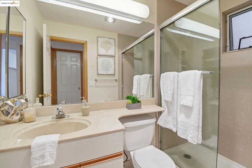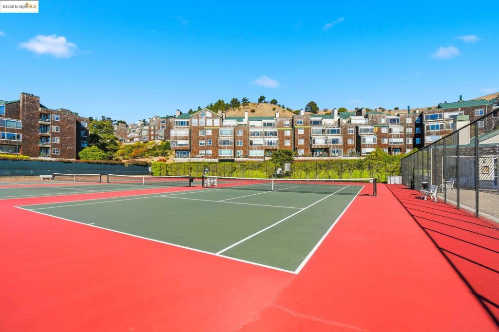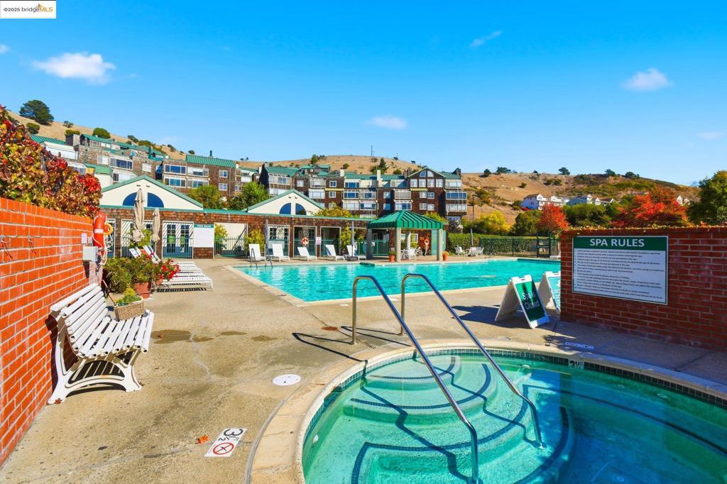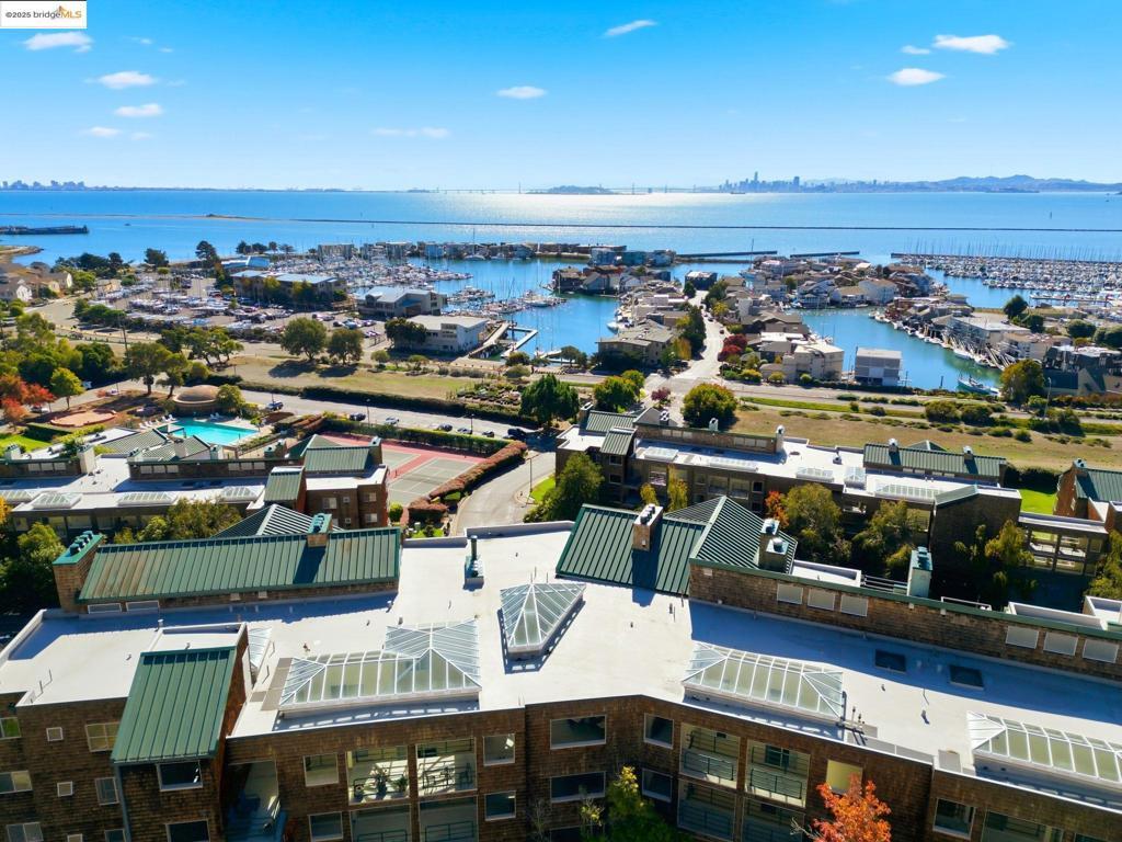 Incredible views from this spacious, 914 sqft 1 bedroom unit located in quiet Brickyard Cove. From the living room and bedroom windows you have views spanning Oakland to Marin with straight on views of SF, Angel Island and the bay. Freshly painted and all new carpet this unit is move in ready. Unit has W/D and level entry. The amenities are endless: 2 car gated garage, one space with storage, year round heated pool with spa and sauna, full gym, tennis/pickle-ball courts, a club house, a community garden and EV charging stations. Situated along the Bay Trail and surrounded by Park and hills, there is no limit to walking, hiking and biking activities. Richmond Yacht Club, Miller Knox park and beach are just around the corner. The quaint town of Pt Richmond has grocery, post office, comm. playhouse, many restaurants and salons. Even a Natatorium and Mechanic's Bank. Minutes to Marin and Berkeley, HWY 580, BART, Bridges and Richmond Ferry to SF. Perfect for first time buyers, a second home, or those who are downsizing.