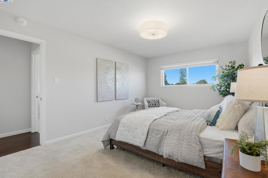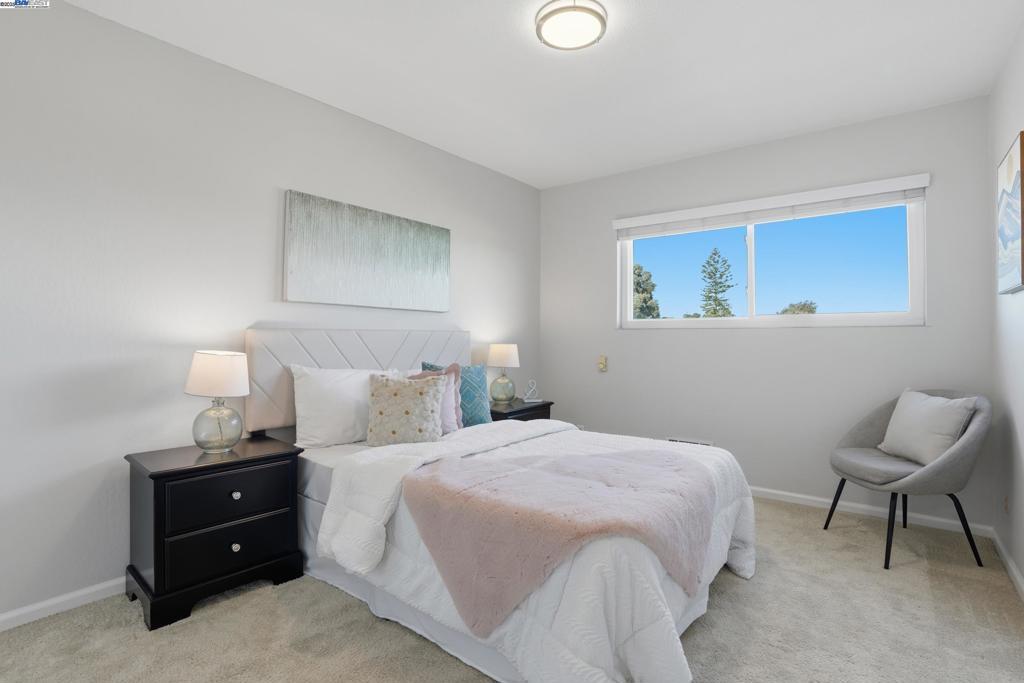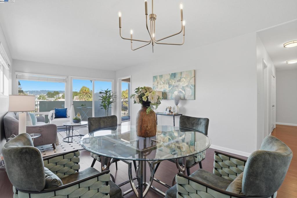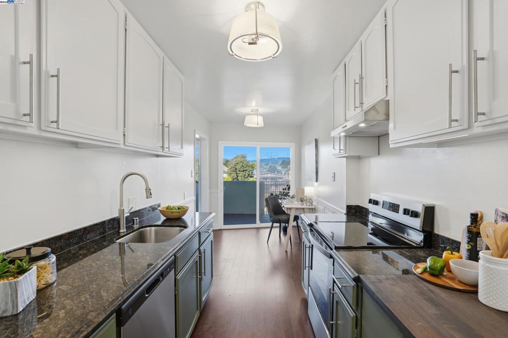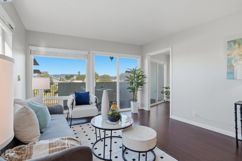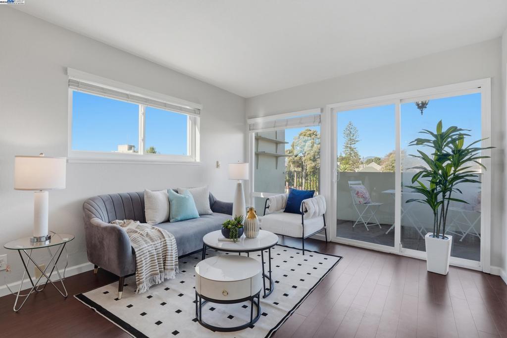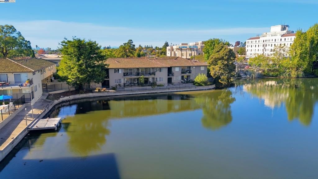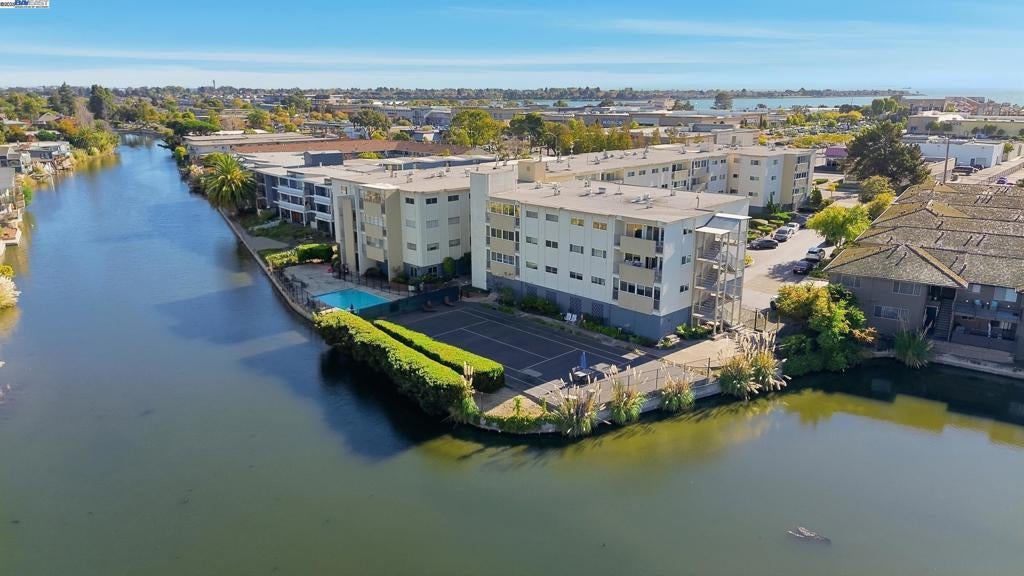 A rare top-floor waterfront condo in the St. Francis, celebrated for its spacious layouts and captivating lagoon and hillside views. This corner unit is the best location in the building — serene, private and filled with natural light. Step inside and feel instantly at home. Warm hardwood floors guide you to an open living area. Every room frames a view — and on a clear day, you can even spot the SF skyline! Enjoy your morning coffee or unwind at sunset on your private patio overlooking the water. The home features 2 generously sized bedrooms and 2 fully renovated baths. The primary bath offers a spa-inspired walk-in shower, double cherry wood vanity with travertine counter and high-end finishes. The upgraded kitchen has granite counters, a deep sink and stainless-steel appliances. Storage is abundant with 2 large hallway closets, roomy bedroom closets and garage cabinets in front of your secure parking space. Play or lapswim in the pool. Workout in the gym. Location couldn’t be better — Safeway, Trader Joe’s, & Crunch gym is across the street. Park Street shops & dining are only a few blocks away. Alameda’s stunning beach sunsets are a short stroll.