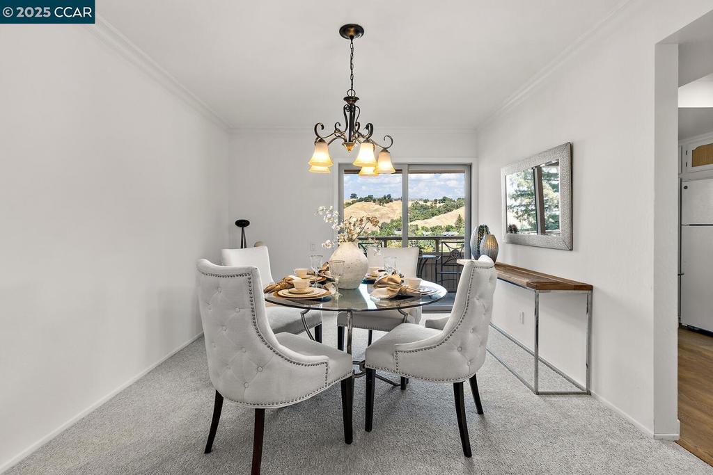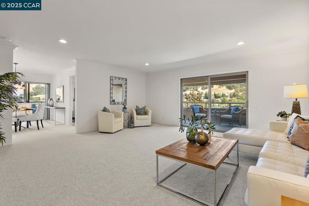 Welcome to the Villa Barcelona, a lovely top-floor condo in Rossmoor . This spacious two bedroom, two bathroom home is located on the top floor of an elevator building, giving you and your guests easy level-in access. Inside this spacious condo you'll find almost 1,400 square feet of pristine living space with fresh paint, new carpet and new luxury vinyl flooring in the Kitchen and entry. The Kitchen has sleek granite counters, some new appliances, and room for a small breakfast table. The Dining Room is adjacent to both the cheerful Kitchen and large Living Room, providing lots of room for every day living and entertaining. You'll find not one, but three balconies from which to enjoy our lovely Rossmoor weather, including an expansive balcony overlooking the tennis courts, golf course, and rolling hills. There are lots of sought-after updates including dual-pane windows and sliders, smooth ceilings, crown molding and more. Laundry is easy with a stacked washer/dryer in the Guest Bathroom, and storage abounds with multiple closets throughout the home, built-in bookcases in the Guest Bedroom, and cabinets on the balcony. Come see this adorable penthouse and make it your own!