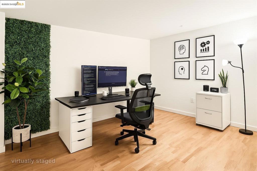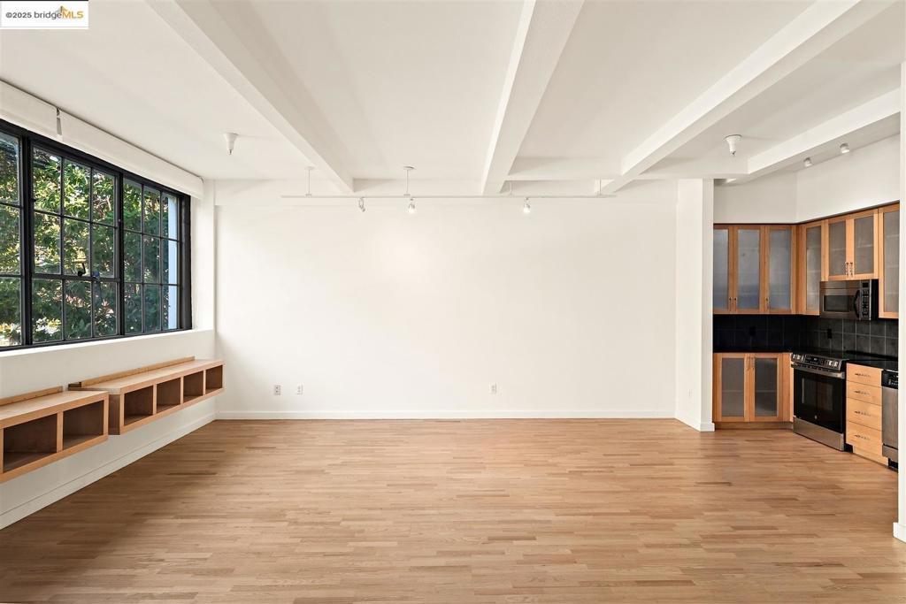 Discover refined urban living in this beautifully updated live/work loft style condo located at the Oliver Lofts in the heart of Emeryville. Sophisticated & modern, this spacious loft showcases an open floor plan w/ high ceilings, freshly painted interiors, & refinished hardwood floors that highlight its industrial character. The kitchen has been thoughtfully updated w/ a new GE electric glass-top range & oven, sleek chrome pull-down sprayer faucet, & connected ice maker. The large office space can serve as a 2nd bedroom, den, or exercise room. Upstairs features a full bath, spacious bedroom & in-unit laundry. The newly remodeled bathroom boasts a new Castico composite stone shower w/ frameless Coraline XL sliding door, an elegant Allen+Roth marble-top vanity, & an LED fog-free medicine cabinet. The bedroom offers plush comfort w/ premium short-pile carpet & top-quality padding & Bali Blinds. Additional upgrades include a new return air grill w/ easy-access filter, new GE washer and dryer, & stylish finishes throughout. Perfectly positioned near shopping, dining, & major commuter routes, this modern Emeryville loft blends industrial charm w/ contemporary elegance - ideal for today's creative lifestyle.