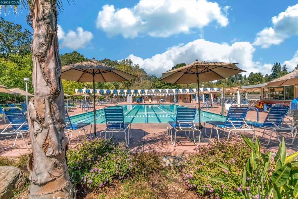 Best View in Rossmoor! Experience refined living with panoramic views of Mt. Diablo, the rolling hills of Rossmoor & downtown Walnut Creek from this extensively remodeled 2-bedroom, 2-bath home in Rossmoor’s 55+ community. Step inside to beautiful wood floors in the entry and kitchen, complemented by skylights, recessed lighting, and dual-pane windows that fill the home with natural light. The open-concept kitchen is designed for both entertaining and everyday living, featuring custom cabinetry, stone counters, stainless steel appliances, under-cabinet lighting, and windowed upper cabinets that flow seamlessly into the dining area. The living space is anchored by a cozy electric fireplace with elegant built-in cabinetry, while a versatile enclosed room offers the perfect spot with built-in office or hobby space. The spa-inspired primary bath showcases tile flooring and a large stall shower, while the second bath includes tile flooring and a walk-in jetted tub/shower for relaxation. Additional highlights include luxury vinyl plank flooring, plush new carpet, a conveniently located carport, and an extra storage unit. Enjoy Rossmoor’s vibrant gated lifestyle with golf, tennis, pickleball, bocce, hiking, fitness center, theater, dog park, hobby rooms, and 200+ clubs.