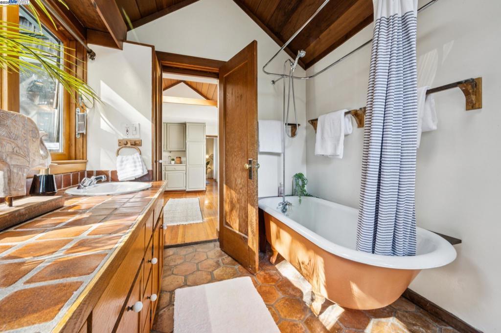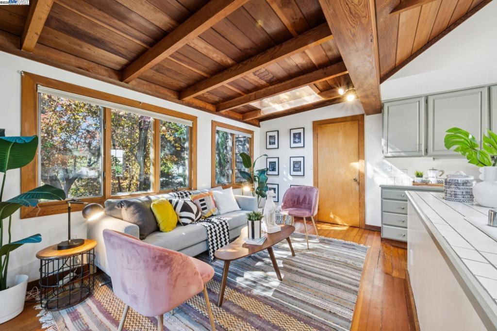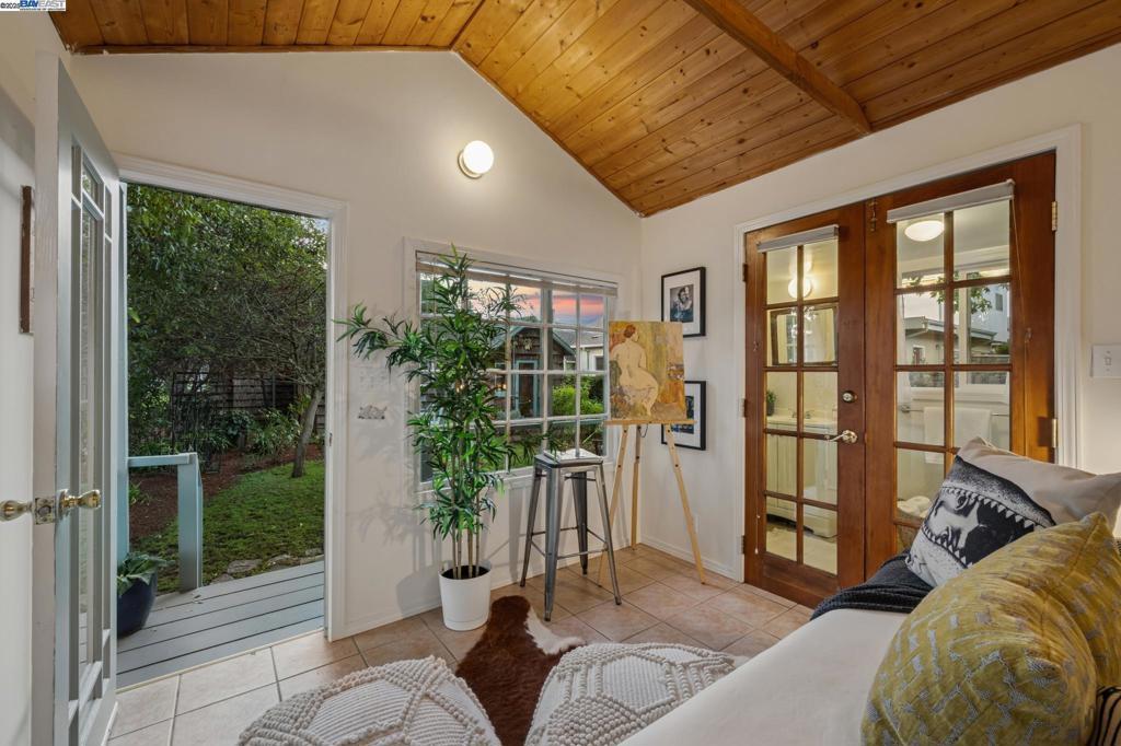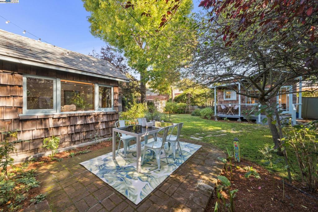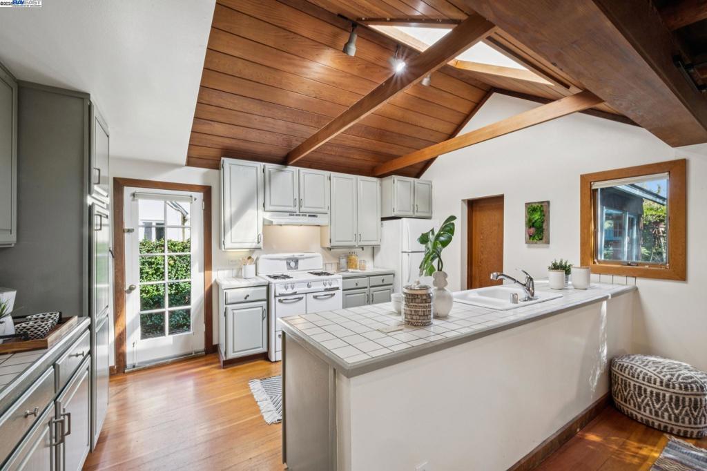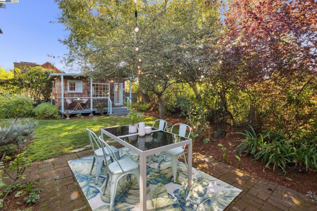 Along the banks of Codornices Creek in prime Albany, this charming 2BD/1BA main home and studio casita (with another full bath) create a true oasis near the world-class amenities of the North Berkeley/Albany border. Set on a large lot, the 1444 SQFT home is surrounded by mature trees, enchanting gardens, level lawn, and a musical creek. From the neighborly porch, step into the front living and dining area where sunlight streams from dual-hung windows onto wood floors. The heart of the home is the spacious eat-in kitchen and family room, featuring a beamed ceiling with skylights, garden views, and a vintage Wedgewood stove. A glass door opens to the backyard for indoor/outdoor living. Featuring meandering paths through the garden and down to the creek, the backyard is a lush refuge with plenty of room to entertain, unwind, and play, featuring two sheds and a detached casita with full bath and an Airbnb rental history. Back inside, the home’s large full bath with dual vanity invites you to soak or shower immersed in garden views. Upstairs, find two bright bedrooms with closets. A long driveway provides off-street parking. Nearby, enjoy great dining, entertainment, shopping, respected private and public schools, BART, and Cal just up the road.