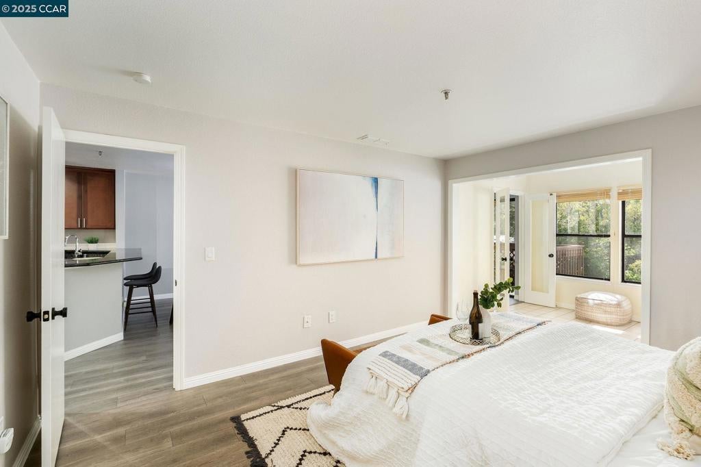 Discover comfort, functionality, and convenience in this beautifully updated condo in The Villas community. Featuring 2 bedrooms, 1.5 bathrooms, and a flexible bonus area off the primary suite—perfect for a home office, fitness space, or reading retreat—this home checks all the boxes for today’s lifestyle. Enjoy a spacious layout with laminate flooring throughout, fresh interior paint touch-ups, and a tankless water heater for added efficiency. The open-concept living and dining areas flow into the kitchen and out to a private deck with a peaceful backdrop—nestled at the edge of the community with no shared common-area views. The primary suite includes dual closets and direct access to the bonus room, while the second bedroom is positioned near the updated half bath—ideal for guests or shared use. Additional features include in-unit laundry, an assigned covered parking space, and access to resort-style amenities such as a pool, spa, and clubhouse. HOA fees include trash and water. Convenient elevator access in the building. Located just minutes from Walnut Creek’s vibrant downtown, BART and freeways, with quick access to top-rated schools including Las Lomas High School, this home delivers the best of suburban living with urban convenience.