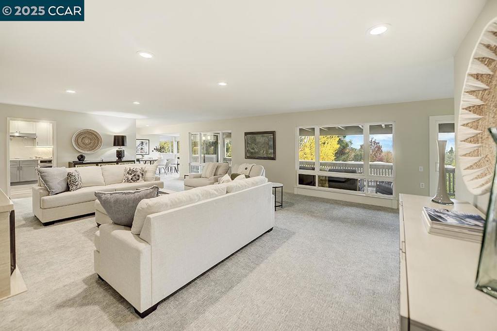 Why spend over a million when you can have it all—luxury, comfort, and beautifully designed space? This exceptional residence offers over 2,400 sq. ft. of thoughtfully reimagined living, blending modern sophistication with a warm, inviting ambiance. The sleek kitchen features a mirrored TV and 3-door counter-depth refrigerator, opening to a serene living area with an elegant electric fireplace. The expansive primary suite feels like a private retreat with California Closets, a dual vanity, and a walk-in shower. Two additional bedrooms on the opposite side provide peaceful separation for family or guests. Every detail enhances comfort: Hunter Douglas honeycomb shades, high-quality dual-pane windows, dual heat and air units with separate controls, dual water heater tanks, designer carpet, and a dedicated laundry room with sink, washer, and dryer. An enclosed wrap-around side room is ideal for an office, art studio, or yoga space. Perched in an elevated setting, the home’s tranquil “treehouse” feel is complemented by natural views and an unbeatable location—just steps from the Event Center, Golf Pro Shop, Restaurant, and the upcoming new pickleball courts. With two side-by-side covered carports, EV charging, and room to welcome loved ones, THIS HOME IS TRULY ONE OF A KIND!