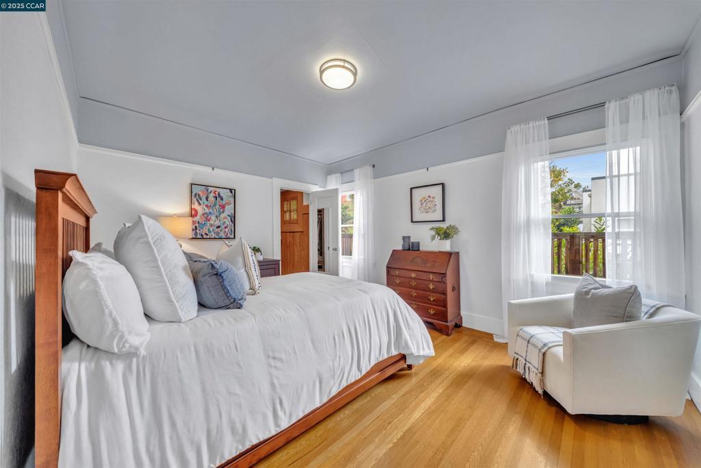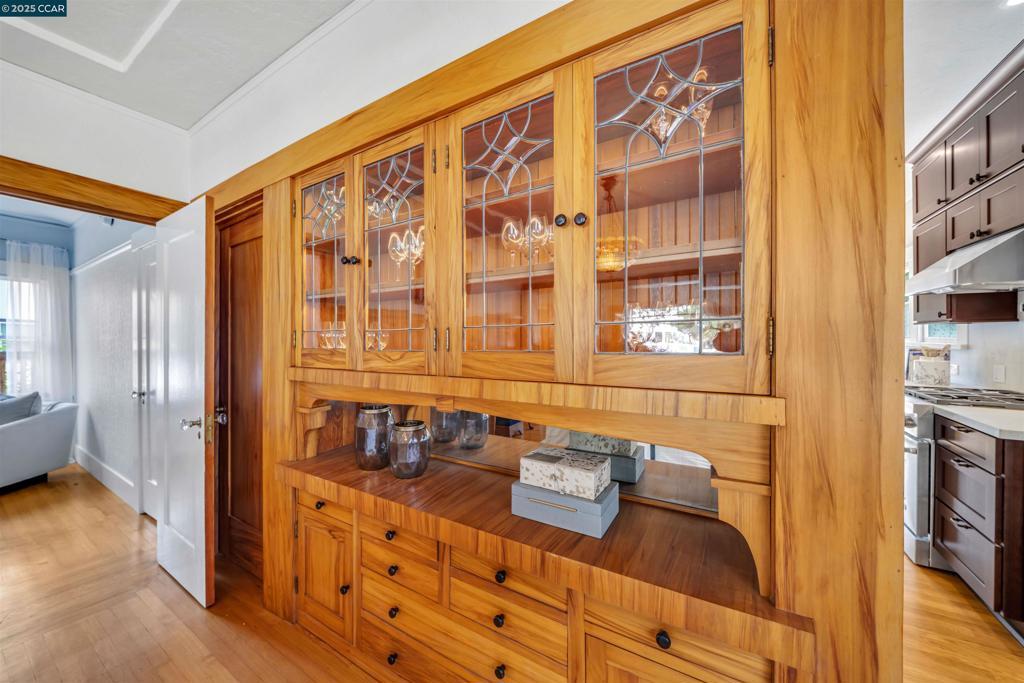 On the market for the first time in almost 40 years! This meticulously maintained craftsman home has been beautifully restored with refinished woodwork, hardwood floors, built-ins with leaded glass, coved ceilings as well as remodeled kitchen & bathrooms, upgraded electrical & plumbing. Entering this charming home you are greeted by a cozy foyer with bench seat and leaded glass pocket door. The light filled living room with wood burning fireplace opens to expansive dining room with built-in hutch and wainscoting. Bedrooms with gleaming hardwood floors are located adjacent to remodeled bathrooms boasting radiant heated flooring, luxurious primary bathroom has soaker tub and custom walk-in shower. Gorgeous gourmet kitchen remodeled in a timeless style leads out through french doors to a spacious deck & backyard ideal for entertaining, gardening or relaxing. ADU possibilities with sizable garage & attached studio located at the rear of the property following a lengthy driveway. Located in one of Alameda's most coveted neighborhoods, near popular Franklin Elementary School which is across from swimming pool, tennis courts & play structures in Franklin Park. Moments to cafes, locally owned stores or a stroll to the beach! (Ferry to SF from terminals on either end of town.)