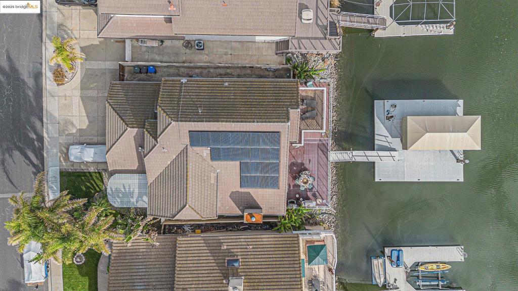 This wonderful 4-bedroom, 2.5-bath home offers over 3,100 sq. ft. of beautifully designed living space. Step inside to soaring cedar, vaulted ceilings and a dramatic catwalk overlooking the sunken living room—perfect for entertaining with a full bar and seating area. The spacious eat-in kitchen opens to a separate formal dining room and features access to an expansive vinyl deck, ideal for gatherings or sunset dining. Enjoy the beauty of hardwood flooring throughout and a versatile main-level bedroom that can double as an office, den, or guest space. The primary suite offers its own private retreat with a large deck and spiral staircase leading to the lower-level decking—perfect for taking in the water views. Energy efficiency meets luxury with owned solar, keeping your utility costs low year-round. There’s side yard access for all your toys and an extra-large U-shaped dock with a canopy, spacious enough to accommodate a table and chairs—perfect for relaxing or entertaining waterside. With desirable eastern exposure and access to over 1,000 miles of Delta waterways, you’ll enjoy endless boating, skiing, fishing, and paddleboarding adventures right from your backyard!