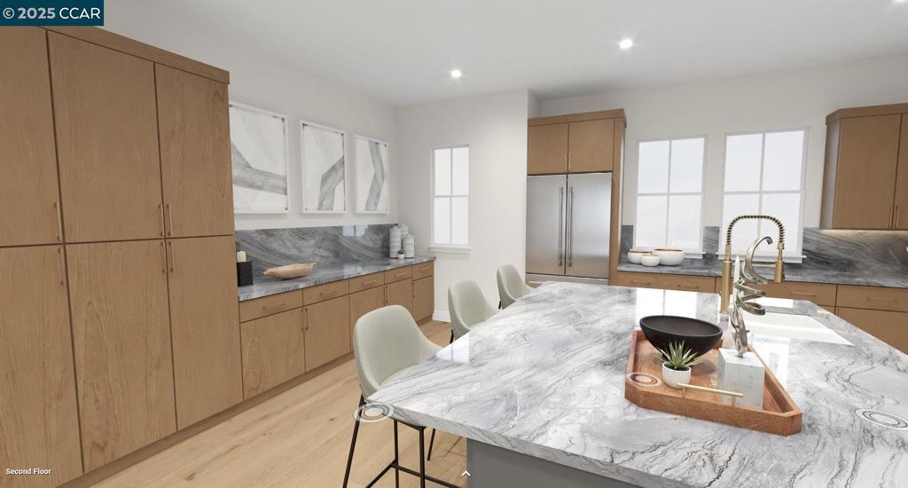 Discover luxury living in a sought-after location at Manzanita Park. The first floor offers a secluded secondary bedroom with a desirable private bath. The second floor opens with a stylish great room featuring access to a casual dining area and a lovely covered patio. The smartly designed kitchen is highlighted by a large island with wraparound seating, stainless steel appliances, modern cabinets, ample counter and cabinet space, and a pantry. At one end of the third floor lies the primary bedroom suite, complete with a walk-in closet and a serene primary bath with a dual-sink vanity, a tranquil shower with seat, linen storage, and a private water closet. Two charming secondary bedrooms share a full hall bath. Additional highlights include an everyday entry with drop zone, a second-floor powder room, and convenient bedroom-level laundry. Picturesque rolling hills of Morgan Hill. Manzanita Park Community amenities include pickleball courts, tot lot, private dog park, centralized resident congregation area and serene gardens. Located close to 101, Caltrain, employment and education hubs of Silicon Valley. Enjoy a vibrant nightlife and elevated dining experience in Downtown Morgan Hill. (Photos not of actual home, for marketing, features and upgrades are different)