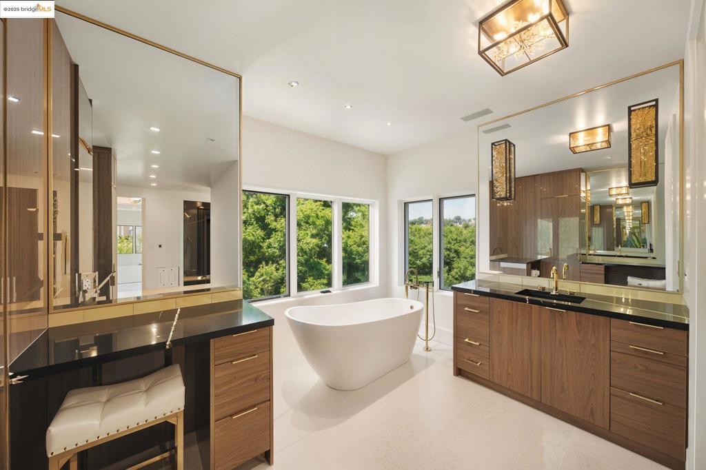 Perched above the Caballo Hills in the prestigious Ridgemont enclave, this newly constructed 5,834 square-foot architectural masterpiece offers 5 en-suite bedrooms, 5 full baths, and 2 half baths, all designed for luxurious hillside living. As your private elevator opens into the formal dining room, a statement chandelier welcomes you into a world of refined elegance. Wide-plank hardwood floors lead into airy living spaces that blend clean lines with natural light, creating the perfect setting for both entertaining and everyday comfort. At the heart of the home is a chef’s kitchen featuring dual oversized islands that seat twelve, custom cabinetry, Pantry, and premium appliances tailored for effortless hosting and connection. The primary suite is a serene retreat, complete with its own fireplace, morning bar, walk-in closet, private laundry, steam shower, soaking tub, Dual toilet areas, and heated floors. Every detail evokes calm, comfort, and sophistication. A private home theater with surround sound transforms evenings into cinematic escapes. Smart home features throughout, dual laundry rooms, and an additional 700 SF three car garage with EV charging stations complete this extraordinary offering. Your Dream Home Awaits!