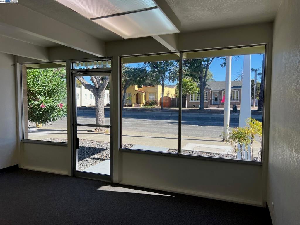 Prominent exposure for your business! Space was an insurance office for many years and now available. Open concept with one private office. Large picture windows allow plenty of natural light. Two bathrooms. Storage area with 8 ft pull up door. Illuminated monument box sign provides high visibility for business name. Off street parking available. Convenient location minutes to 580.
