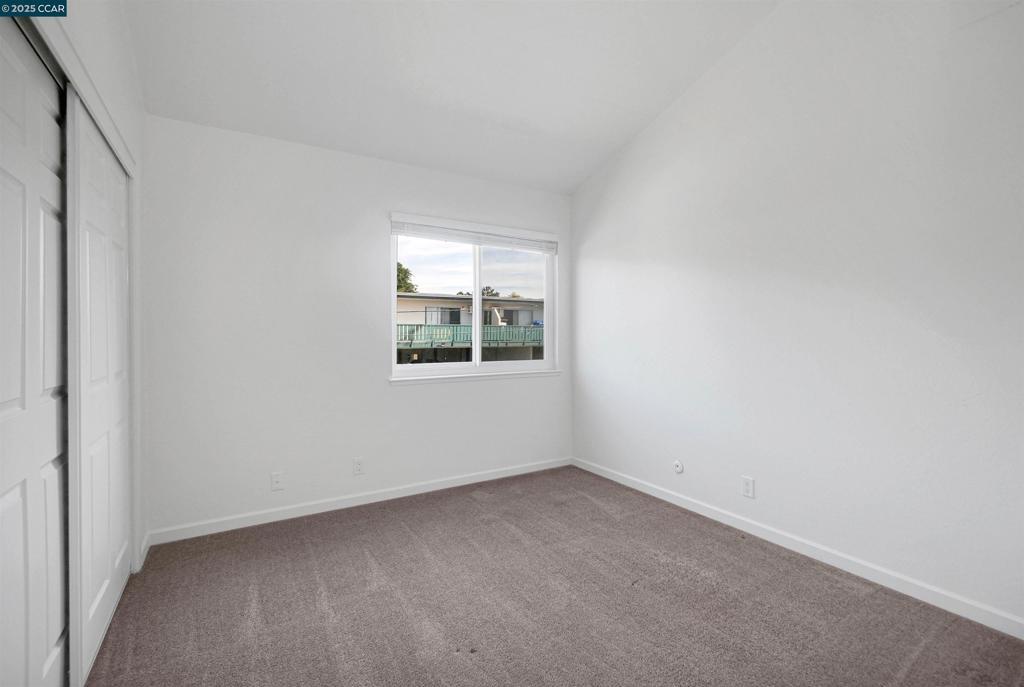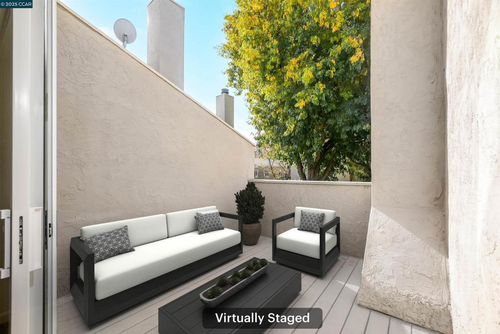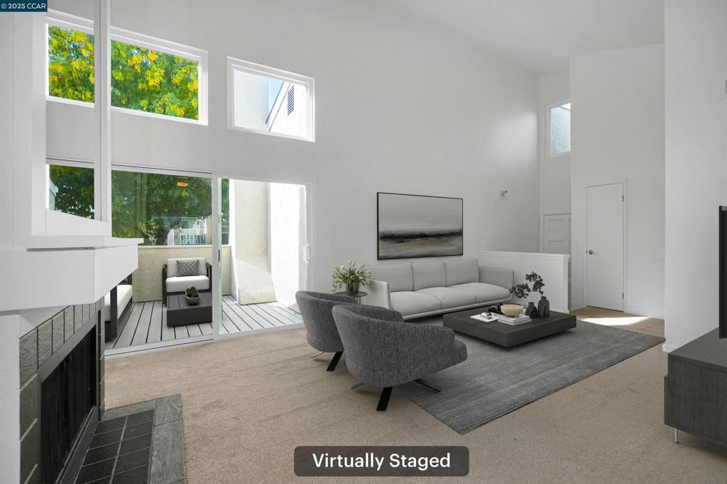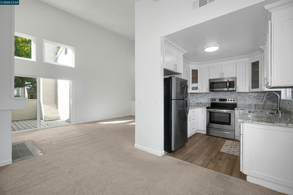 Step into this light-filled, move-in-ready 2-bedroom, 1-bath end-unit condo that perfectly balances modern design with inviting comfort. Soaring ceilings and thoughtful upgrades create a bright, open atmosphere throughout. The remodeled kitchen features crisp white cabinetry, granite countertops, and stainless-steel appliances, while the updated bathroom offers a touch of contemporary elegance. Additional highlights include fresh interior paint, dual-pane windows, central A/C and heating, and convenient in-unit laundry with a stackable washer and dryer. Enjoy peaceful views of the greenbelt from your oversized balcony—ideal for morning coffee or unwinding at sunset. A private garage with ample storage and an additional assigned parking space add extra convenience. Perfectly situated near highways, BART, parks, shopping, and Monte Gardens Elementary School, this home offers the ideal blend of comfort, style, and location.
