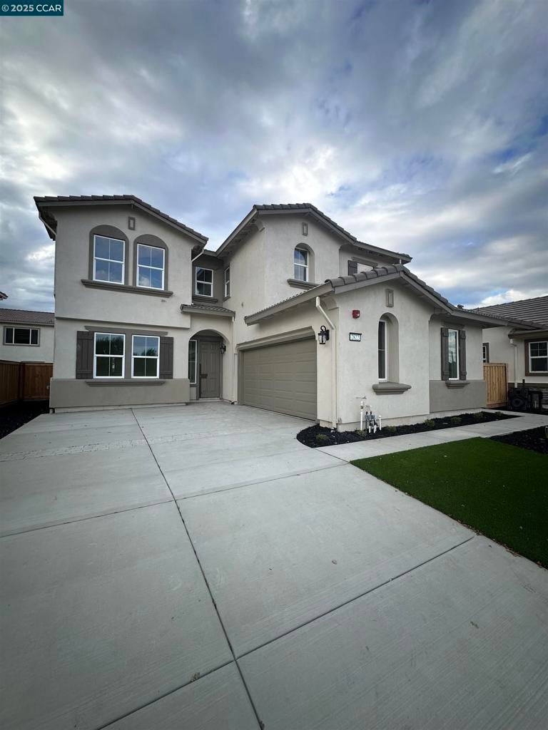 The Dawson floor plan is available at The Estates at Newport in West Sacramento, CA. With 3,123 square feet of living space, this expansive two-story home comes with 4 bedrooms,3.5 bathrooms. On the main level, you’ll find the beautifully appointed kitchen with upgraded black shaker cabinets and nickel hardware. The dark cabinets are offset with light wood laminate flooring and white solid surface countertops. The first floor also includes one of the bedrooms featuring an ensuite bathroom—a versatile space that could serve as a guest suite or home office. Moving to the second floor the primary suite is generously sized, complete with a large walk-in closet and a primary bathroom that features dual sinks, a tub, and a separate shower. The upstairs also includes upgraded carpet and padding for extra comfort. Come see Lot 1245 today - the perfect home awaits.