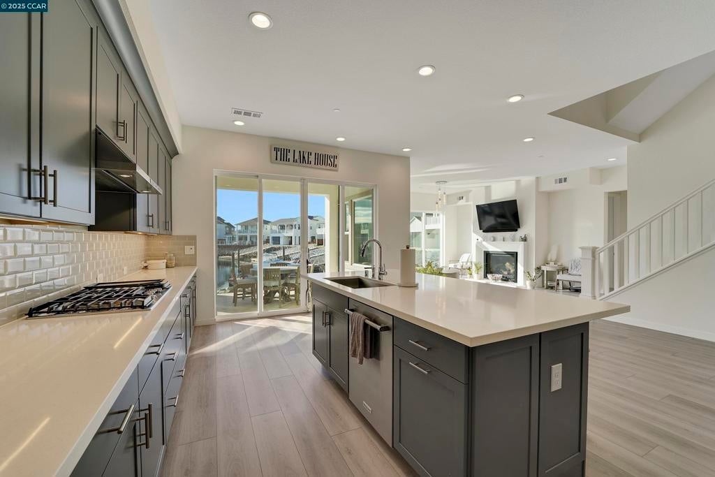Live the luxury lifestyle you always wanted. Stunning and contemporary Delta Coves Waterfront property that checks all the boxes including your private boat ramp and launch. The expensive home boasts of designer touches throughout including an exquisite exterior design. Highlights include modern engineered hardwood flooring, Gourmet Kitchen with quartz countertops including a breakfast bar, designer bathrooms, recessed lighting and much more. This property has a Media Room and extra living space on the upper floor with more breathtaking views. Equipped with a tankless water heater and EV charger to add to the smart home concept. Enjoy comfort year-round with Owned Solar! The backyard is magical. On the water with your boat nearby ready for fun. The centerpiece of community fun is found in the nearby Island Camp. Island Camp is spectacular with a club house, pool, yoga and exercise facilities, sports pavilion with tennis courts, pickleball and beach volleyball. The swim complex offers adult and children pools and a spa to recharge. Nearby cabanas await. Let's not forget the Duffy Bar, the Camp's treasure where you can soak up the Delta views and enjoy a cocktail. The Fourth of July will be a treat with a celebration and events you will not want to miss. Your home is a vacation!
