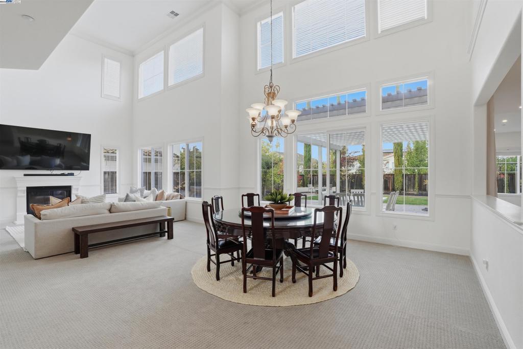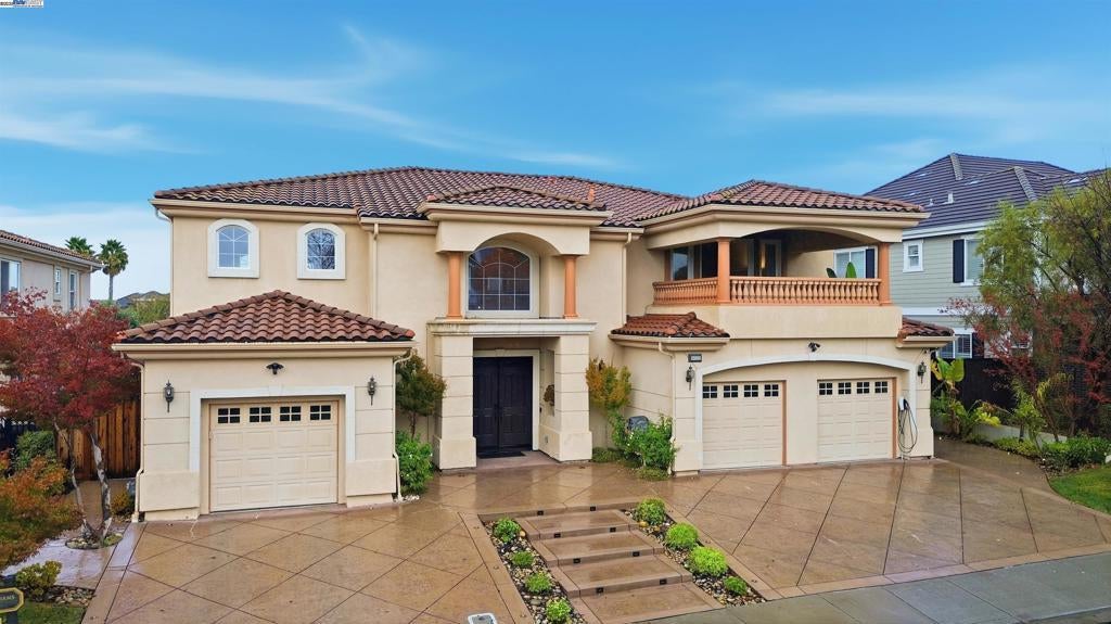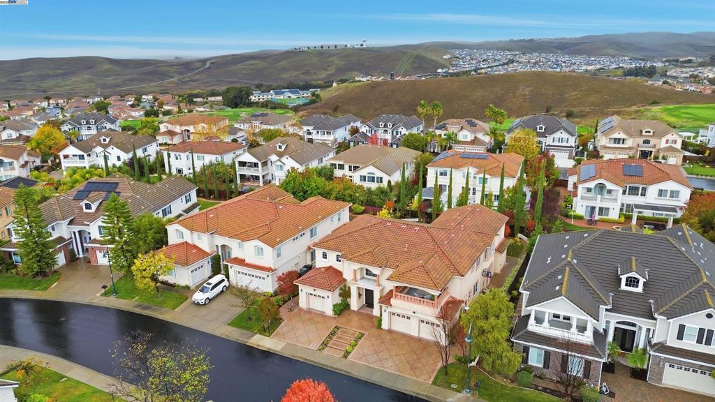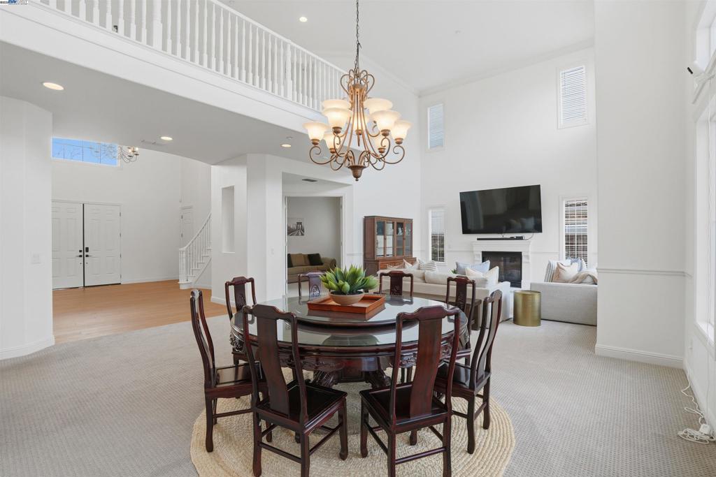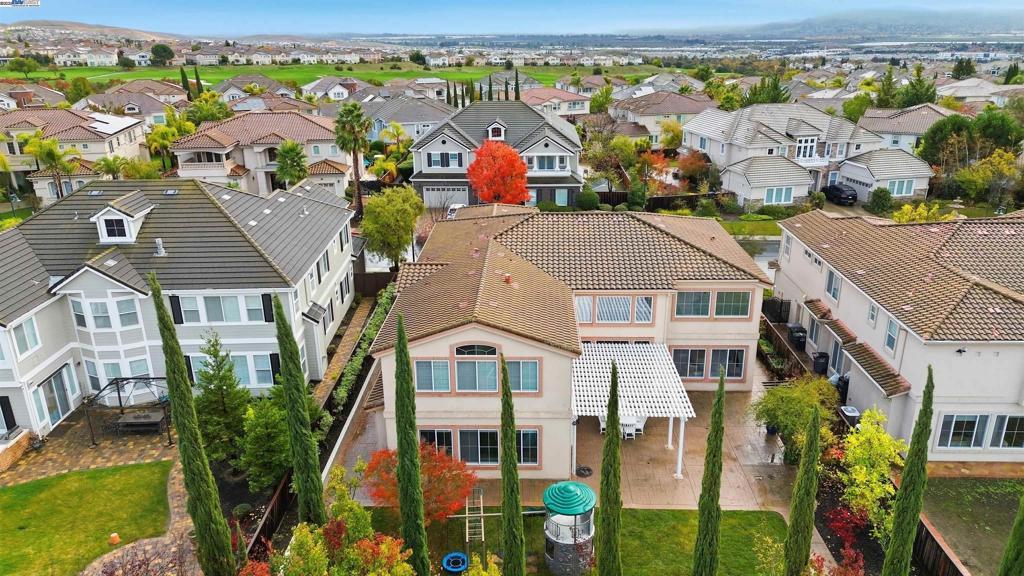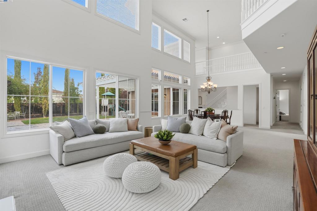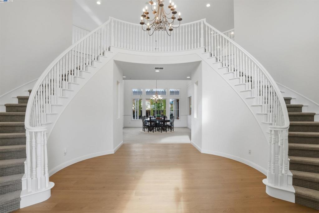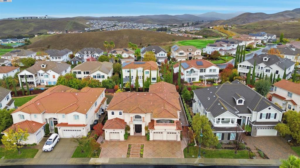 Welcome to this Toll Brothers Atherton executive home, ideally located in East Dublin’s prestigious gated community of Pinnacle Ridge. This elegant 5 bedroom plus office, 5.5 baths, east-facing residence greets you with a grand two-story entry, highlighted by a dramatic dual staircase, soaring ceilings, and refined crown molding. The main level features a spacious den/office, a bedroom with its own en-suite bath, and an additional guest bathroom—perfect for guests or multi-generational living. The chef’s kitchen impresses with a large center island, granite countertops, custom cabinetry, and high-end appliances, providing the ideal setting for cooking, gathering, and entertaining. Retreat to the luxurious primary suite, complete with dual vanities, a jetted soaking tub, a walk-in shower with dual shower heads, and two generous walk-in closets. The upstairs also offers spacious secondary bedrooms, providing comfort and privacy for the whole family. Step outside to a professionally landscaped backyard, where lush garden beds and mature trees surround an expansive patio—perfect for outdoor dining, play, and relaxation. Additional highlights include a three-car garage and an unbeatable location close to shopping, dining, top-rated schools, freeway access, and BART.