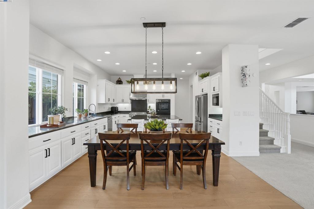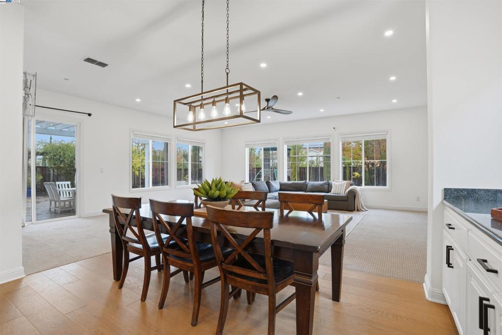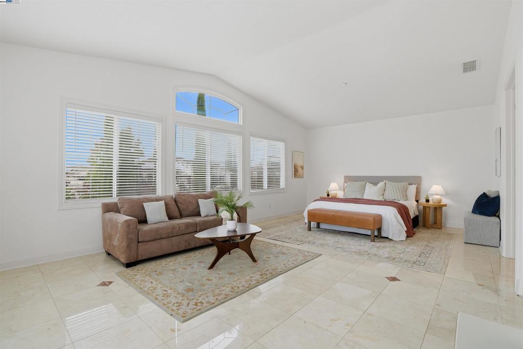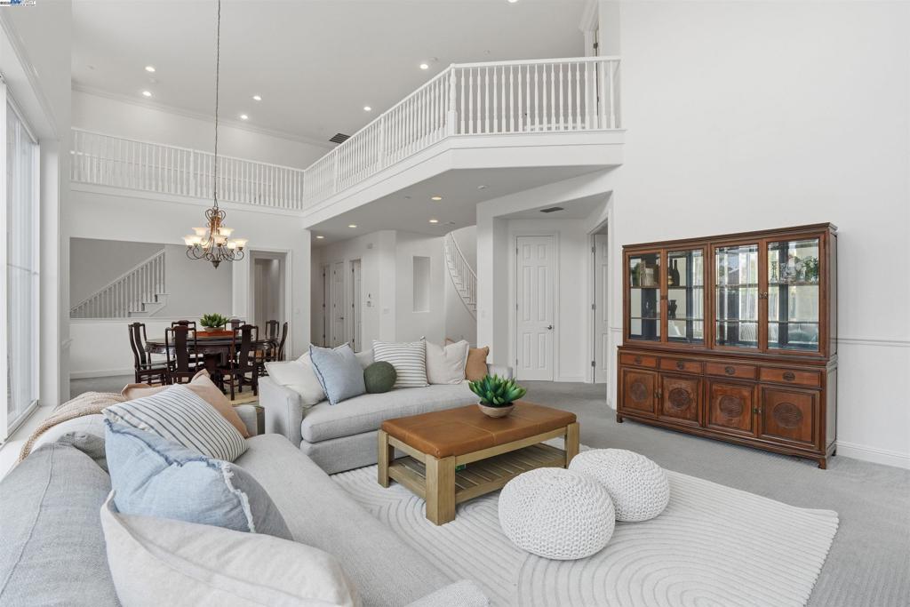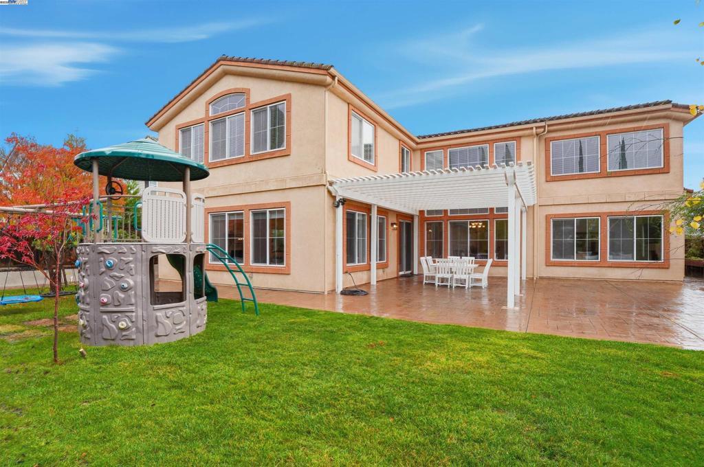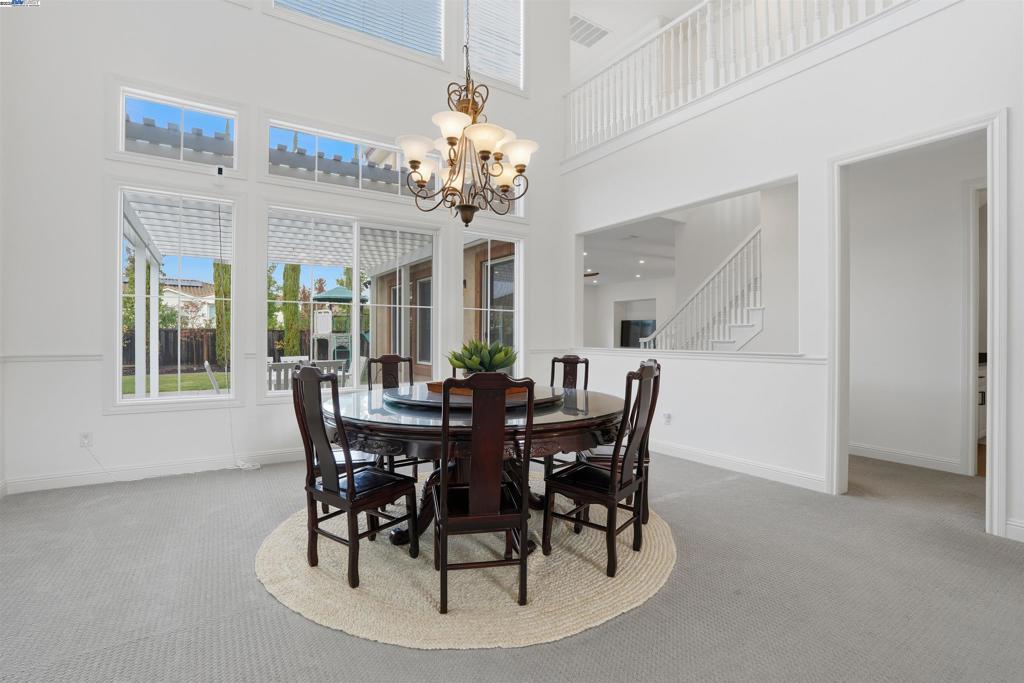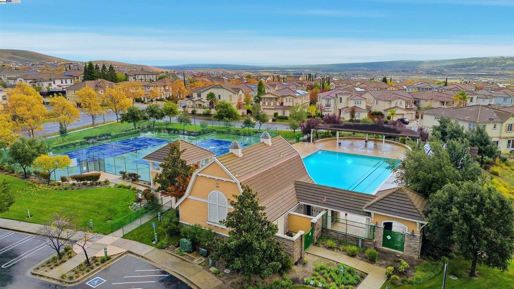 Welcome to this Toll Brothers Atherton executive home, ideally located in East Dublin’s prestigious gated community of Pinnacle Ridge. This elegant 5 bedroom plus office, 5.5 baths, east-facing residence greets you with a grand two-story entry, highlighted by a dramatic dual staircase, soaring ceilings, and refined crown molding. The main level features a spacious den/office, a bedroom with its own en-suite bath, and an additional guest bathroom—perfect for guests or multi-generational living. The chef’s kitchen impresses with a large center island, granite countertops, custom cabinetry, and high-end appliances, providing the ideal setting for cooking, gathering, and entertaining. Retreat to the luxurious primary suite, complete with dual vanities, a jetted soaking tub, a walk-in shower with dual shower heads, and two generous walk-in closets. The upstairs also offers spacious secondary bedrooms, providing comfort and privacy for the whole family. Step outside to a professionally landscaped backyard, where lush garden beds and mature trees surround an expansive patio—perfect for outdoor dining, play, and relaxation. Additional highlights include a three-car garage and an unbeatable location close to shopping, dining, top-rated schools, freeway access, and BART.
