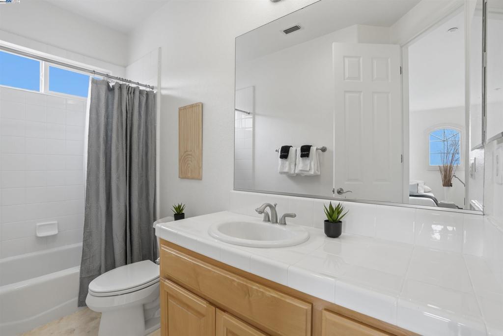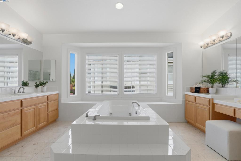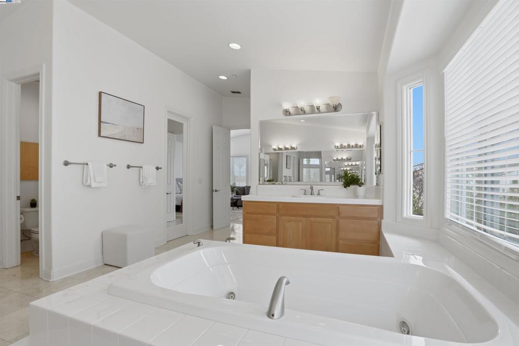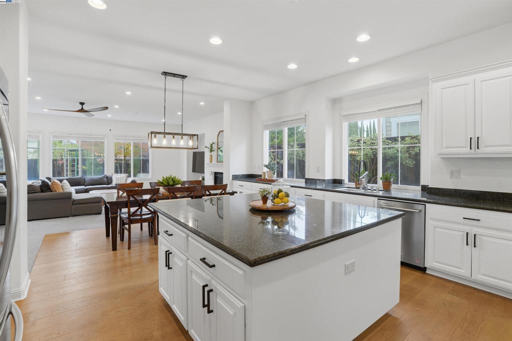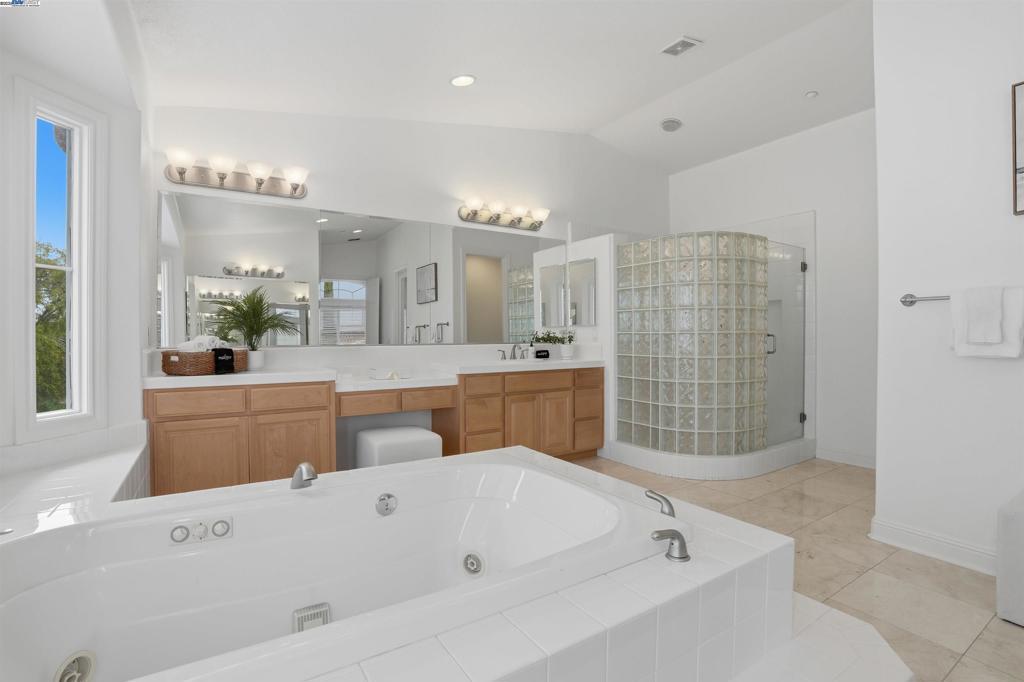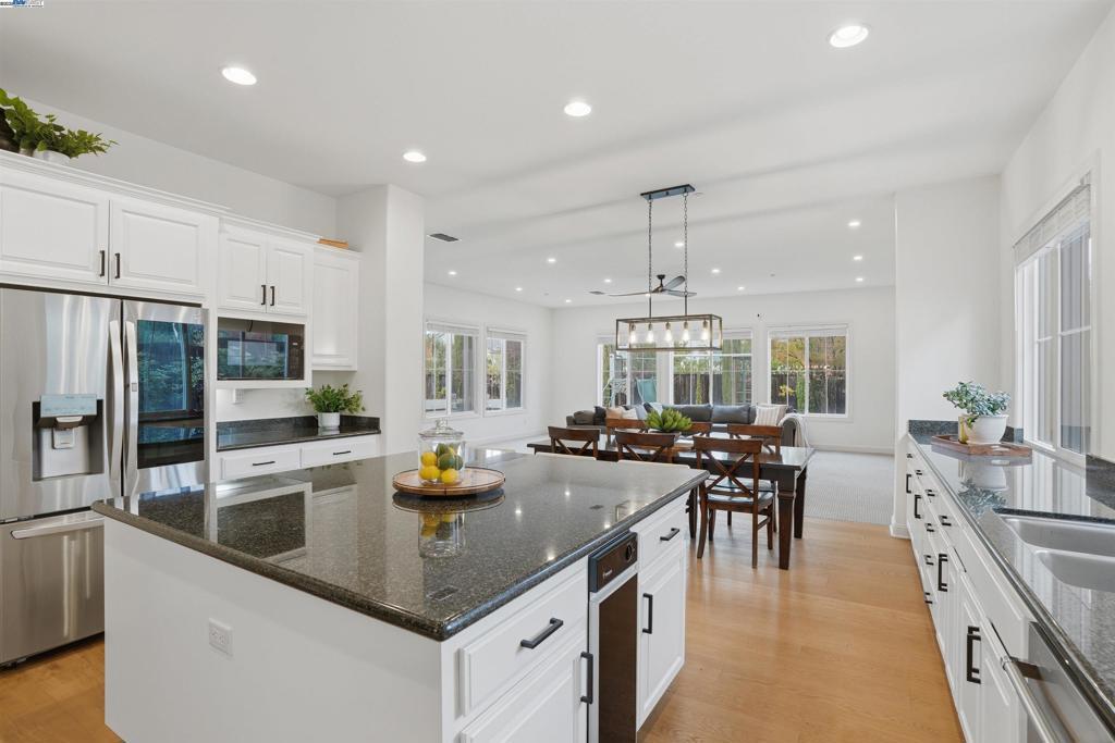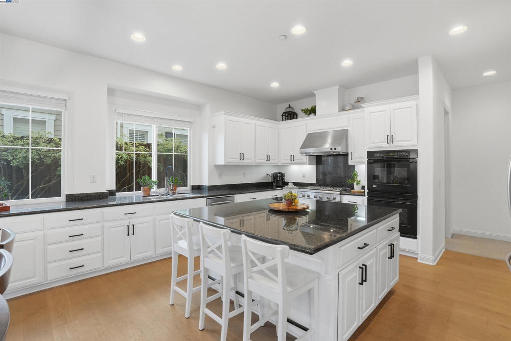 Welcome to this Toll Brothers Atherton executive home, ideally located in East Dublin’s prestigious gated community of Pinnacle Ridge. This elegant 5 bedroom plus office, 5.5 baths, east-facing residence greets you with a grand two-story entry, highlighted by a dramatic dual staircase, soaring ceilings, and refined crown molding. The main level features a spacious den/office, a bedroom with its own en-suite bath, and an additional guest bathroom—perfect for guests or multi-generational living. The chef’s kitchen impresses with a large center island, granite countertops, custom cabinetry, and high-end appliances, providing the ideal setting for cooking, gathering, and entertaining. Retreat to the luxurious primary suite, complete with dual vanities, a jetted soaking tub, a walk-in shower with dual shower heads, and two generous walk-in closets. The upstairs also offers spacious secondary bedrooms, providing comfort and privacy for the whole family. Step outside to a professionally landscaped backyard, where lush garden beds and mature trees surround an expansive patio—perfect for outdoor dining, play, and relaxation. Additional highlights include a three-car garage and an unbeatable location close to shopping, dining, top-rated schools, freeway access, and BART.