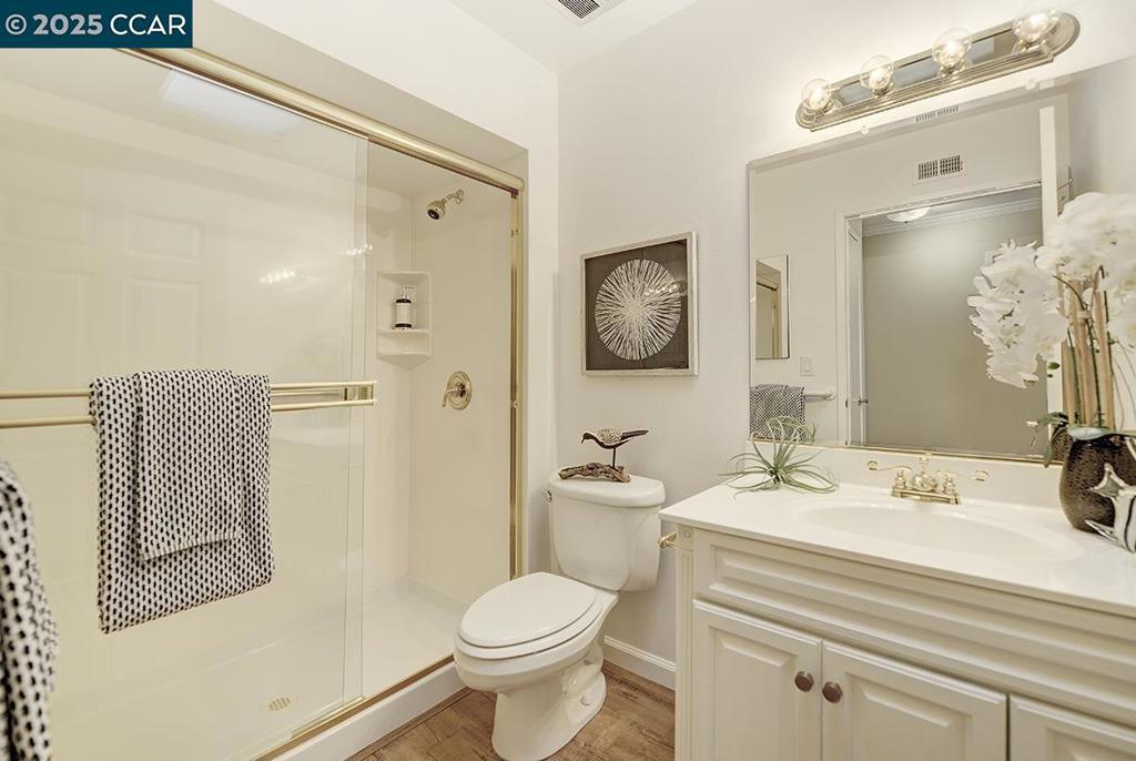 Lovely Updated Level-In Yosemite Model – Steps to the Golf Course! Discover effortless Rossmoor living in this beautifully updated level-in Yosemite model—no steps to entry and located in a desirable four-unit building near the golf course. The unit sits on a bluff, offering a peaceful garden view from the expansive brick-lined patio, perfect for relaxing or entertaining. Welcomed by gorgeous double front doors and a charming front sitting area, this inviting 2-bed, 2-bath home features smooth ceilings, crown molding, and laminate wood-style flooring in the main living areas, with brand-new carpet in both bedrooms. The updated kitchen includes a wine refrigerator, and the convenience of an in-unit washer/dryer enhances everyday ease. Parking Entry E Bldg 203 space 3. Move-in ready and designed for comfort, this home brings together beauty, convenience, and single-level living—your ideal Rossmoor retreat. Rossmoor offers a resort-like lifestyle with golf, swimming, bocce ball, pickleball, gaming rooms for games such as bridge and canasta, hiking, fitness center, dinners, dances, lectures and 200+ clubs and organizations. Now is the time for an exciting new future focusing on you and what you love to do!