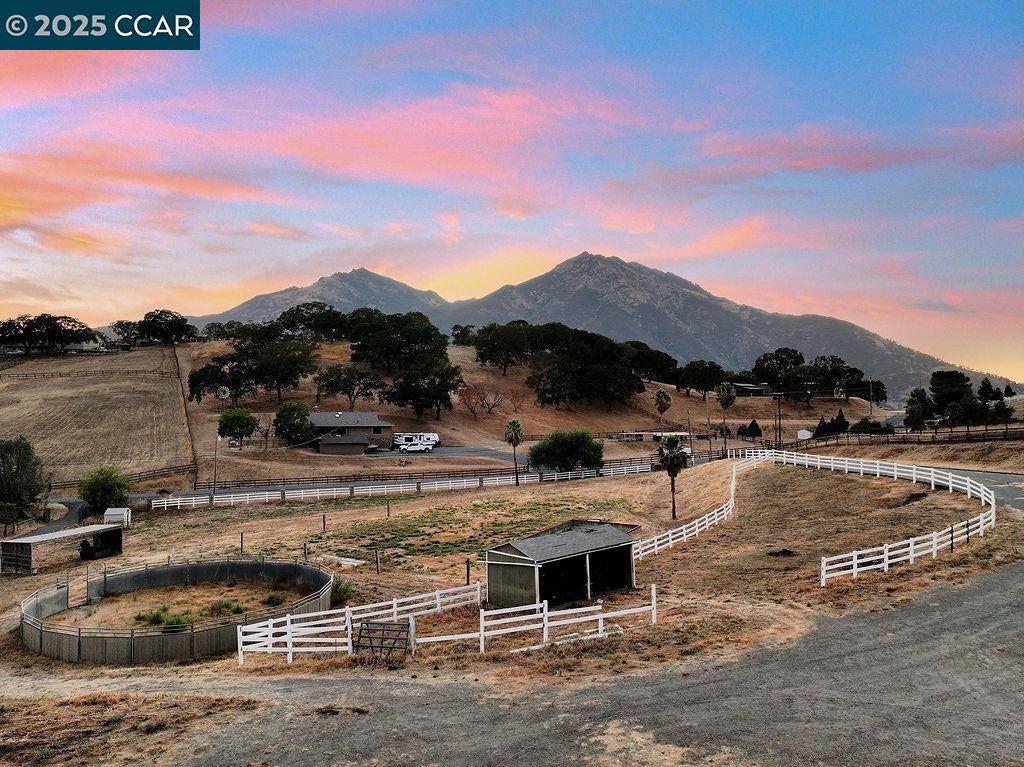 Discover serene country living on 5.36 acres with breathtaking views of Mt. Diablo! This beautifully updated single-story home offers 4 Bedrooms, 3 Bathrooms, a spacious 3-car garage, & vaulted/high ceilings throughout. Enjoy a brand-new Kitchen featuring a 6-burner Thor gas stove, quartz countertops, pantry, and a sink perfectly positioned to take in the mountain views. The open layout flows seamlessly into the dining area & large family room with a stone fireplace and stove insert—perfect for cozy gatherings. The expansive primary suite boasts a walk-in closet & a luxurious new bathroom with dual sinks, a walk-in shower, soaking tub with views & water closet. Laundry Room & Mud Room off Kitchen with flex space potential. NEWER ROOF, SOLAR & HVAC. A barn, horse pen & other structures add to the properties capabilities, with plenty of flat, usable land—ideal for farming, animals, or future expansion. Property has a Foundation poured for a Manufactured Home with Drawings. Call Agent for details. Amazing opportunity. A rare blend of modern comfort, natural beauty & endless potential! Open Sunday 12/21 1:30-4PM