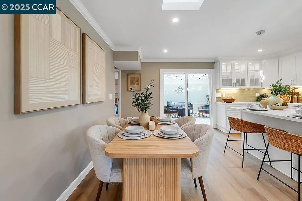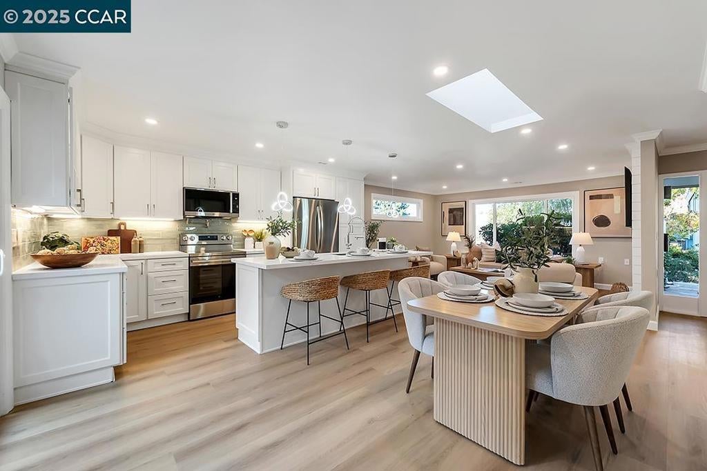A SPECIAL SAN FRANCISCAN - ENJOY TRANQUILITY! This gorgeous remodel is an end unit sidling up to open space with views in a 1-row, 4-unit only, single-story building; nobody above or below and only 1 shared wall. Two steps & a slate walkway through a private courtyard lead past a comfy seating area to the beautiful front door where interior light welcomes you through the high cut-glass window. It's a first peek at the tasteful upgrades to come, with all the bells & whistles you've come to expect from a sophisticated remodel and then some: two skylights and two side windows looking out into trees from the living room & atrium are just some of the many extras. Everything is bright, new and first class, including a 2nd bath with built-in cabinets, the laundry closet with full-size LG washtower, the re-configured kitchen with it's breakfast island & the living room with fireplace and huge TV. Lights twinkle overhead in the big atrium in time for the holidays or your first summer party. The carport, Space 8 under bldg 216, is just a few steps or a sloping trail away. Come and enjoy finding yourself all there is to discover in this beautiful home! Rossmoor is Walnut Creek's premier senior community with a plethora of amenities = a great lifestyle: Learn about it at Rossmoor.com