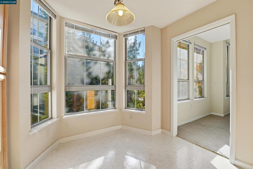 Rare Panorama unit on top floor in Pinnacle Ridge elevator building--does not share any walls with next-door neighbors! High ceilings and walls of windows for a light and bright space! Spacious living/dining area with wood burning fireplace, large primary bedroom with bay window seating area, breakfast room in kitchen. Views from the patio. Separate in-unit laundry room with laundry sink and hook-ups. Hot tub and pool for Pinnacle Ridge residents just across the street. Assigned parking and storage locker under building. Rossmoor offers golf, tennis, pickleball, lawn bowling, and other sports, clubhouses, restaurant, fitness center, security gate, basic cable TV and internet, over 200 clubs and many other amenities.