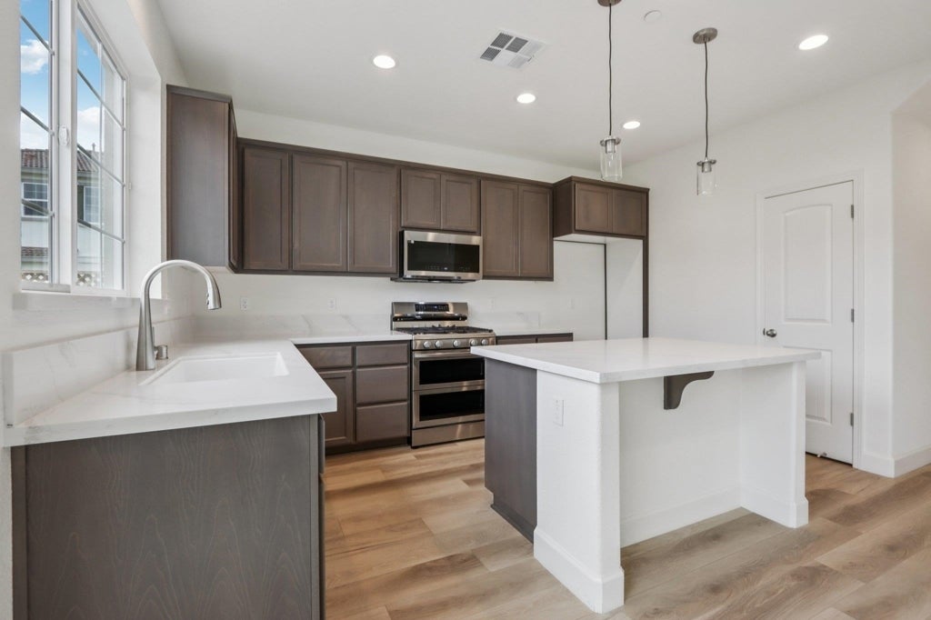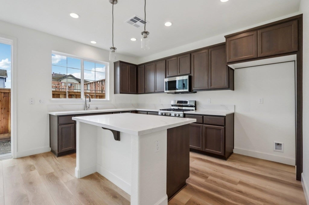 Discover exceptional new construction in a private tucked away location! This Plan is our Aubrey floor plan on a great corner lot! This beautifully designed modern farmhouse style home offers 1,812 square feet of versatile living space, with 3 bedrooms, 2.5 bathrooms. Enjoy a seamless flow into the open-concept great room, casual dining nook, and gourmet kitchen-a perfect space for both everyday living and entertaining. Upstairs, the spacious loft offers flexibility as a second living space, and two generously sized secondary bedrooms share a large full bathroom with dual vanities. The primary suite is your personal sanctuary, featuring a spa-inspired en-suite bathroom with a soaking tub, walk-in shower, dual vanity, and a large walk-in closet. These homes offer the perfect blend of suburban charm and urban convenience. Situated less than one mile from both the BART station and Highway 4, and with easy access to Interstate 680, Liberty II provides unparalleled connectivity for seamless commutes throughout the Bay Area. Positioned between Concord, Clayton, and Antioch, Pittsburg combines a rich history, a diverse community, and a prime location, making this neighborhood an ideal choice for buyers seeking convenience, accessibility, and a welcoming lifestyle. Not exact home.