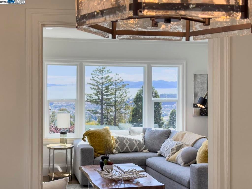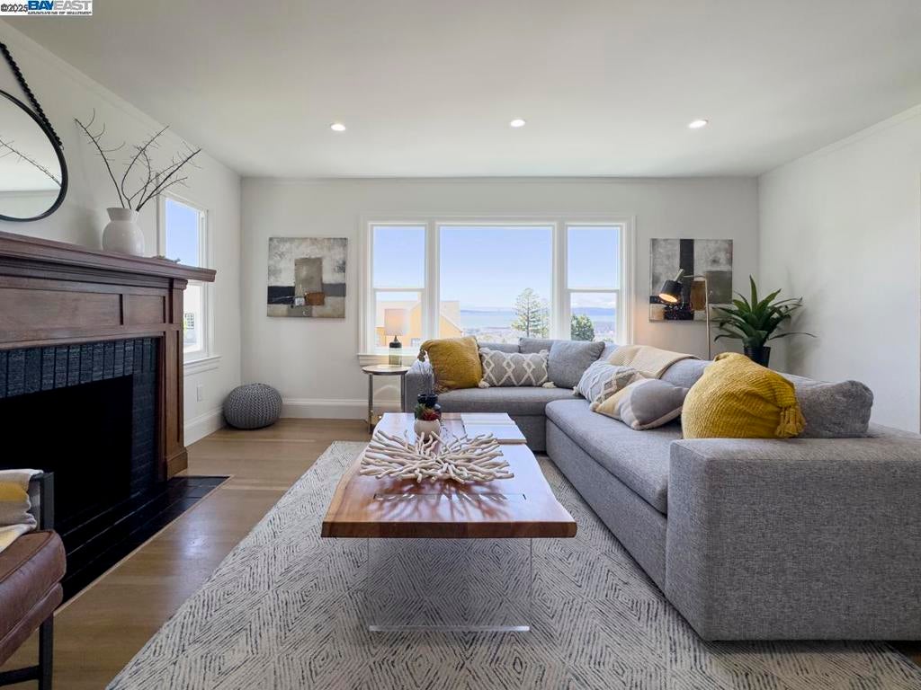 *Transparent Price* Beautifully updated, this 3-bedroom, 2-bath Cragmont home offers 1,784 sq ft of refined living and stunning Bay views. From the front porch, enjoy sweeping vistas of the Golden Gate Bridge, Angel Island, and the San Francisco skyline. Inside, natural light fills the living room with its classic fireplace and new floors. The open kitchen features stainless steel appliances, a gas range, bar seating, a breakfast nook, and a dining area—all oriented toward the iconic views. Two main-level bedrooms include one with Golden Gate views and dual closets, plus a serene garden-facing room. The refreshed hall bath adds modern style. Upstairs, the primary suite provides a peaceful retreat with skyline views, a walk-in closet, and an updated en suite bath. Just steps above, a bonus room captures unmatched bridge views—perfect for an office or guest area. The terraced backyard offers multiple outdoor spaces, complemented by a tandem garage, off-street parking, and a landscaped front yard. A rare find, this home delivers exceptional Bay panoramas in one of Berkeley’s most sought-after neighborhoods.
