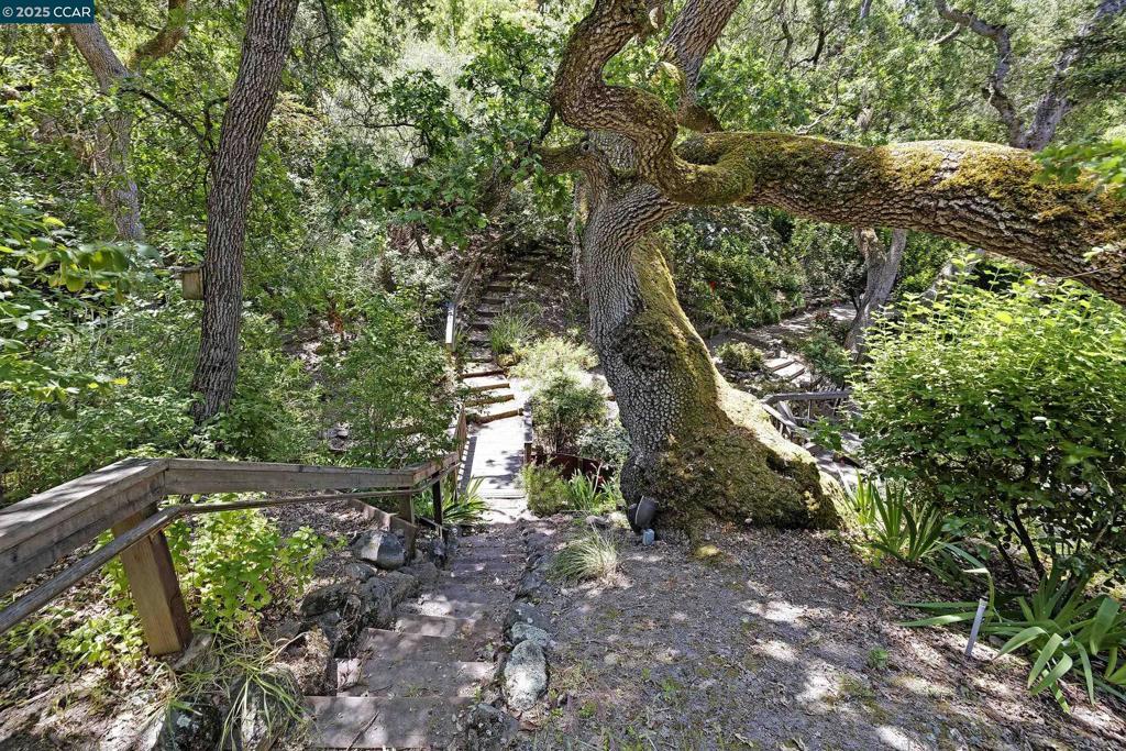 Tucked away in a cul-de-sac in one of Lafayette’s most sought-after neighborhoods, this beautifully maintained 3-bedroom, 2.5-bath home blends privacy, charm, and convenience. Step inside to find gleaming original hardwood floors, and abundant natural light that enhance the home’s warm and airy ambiance. The living room welcomes you with a sunny bay window and a cozy fireplace, flowing into the dining area and updated kitchen. The kitchen features ample counter space, newer appliances, and skylights that bathe the space in sunlight. A flexible bonus room, currently used as an office, offers direct access to the tranquil backyard. Just off the dining area, you’ll find the family room with a wood burning fireplace, next to it, the powder room, and the laundry area. Step outside to a serene backyard sanctuary with no rear neighbors, featuring mature trees, a stone patio, and a seasonal creek that comes alive during the rainy months. The serene primary suite includes a private bath and generous closet space, while two additional bedrooms share a stylishly updated hall bathroom. Additional highlights include dual-pane windows, skylights in the kitchen and living areas, a large two-car garage, side yard access, level lawn and garden pathways. Experience the serenity of this property.