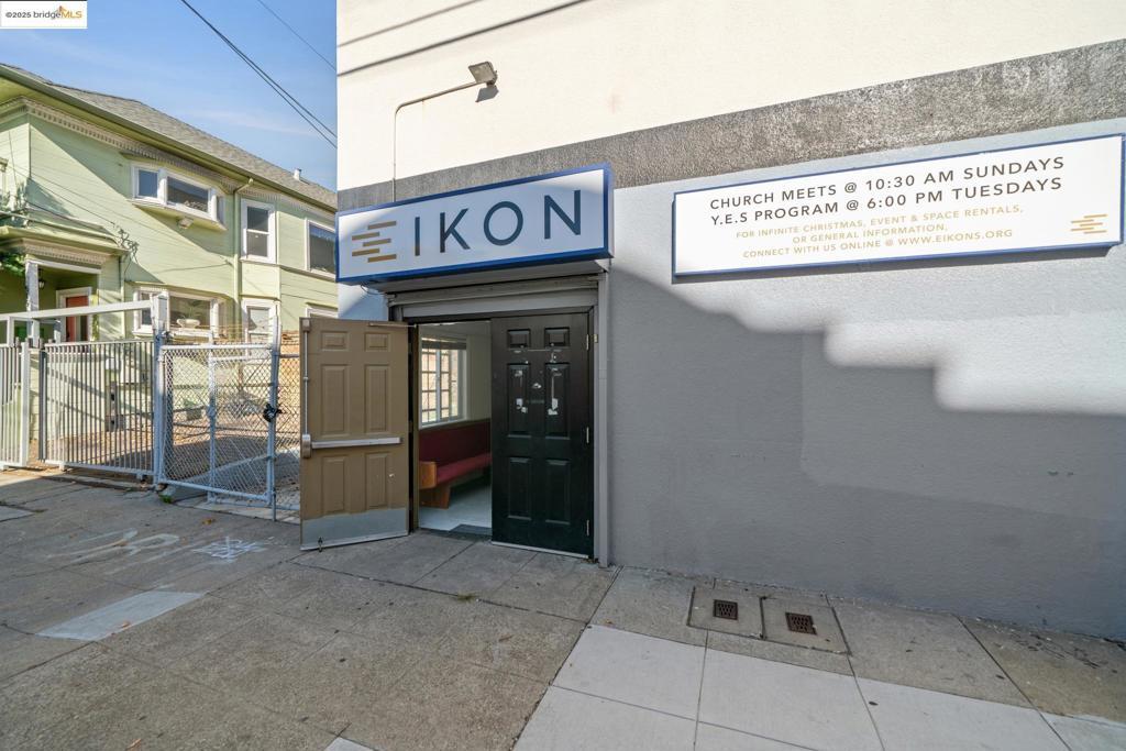 An exceptional opportunity to acquire or redevelop a unique three-story concrete building located in the highly desirable KONO District of Oakland. This property offers significant potential for a variety of uses, including continued operation as a religious facility or comprehensive redevelopment. The building features a large open-span worship space with an overlooking mezzanine on the main level, ideal for large gatherings. The first & second floors include numerous individual rooms suitable for additional offices or multipurpose use, along with dedicated men’s & women’s restrooms on each level. The third floor is naturally illuminated and currently boasts a commercial kitchen & a wide open-span area, complete with adjacent office spaces. The property includes a side alley that provides tandem parking for up to three cars and space for dumpster storage, accessible via an interior side entrance. The location offers easy and convenient access to Downtown Oakland and surrounding areas.This is a once-in-a-lifetime opportunity to secure a prominent property in one of Oakland’s best locations.