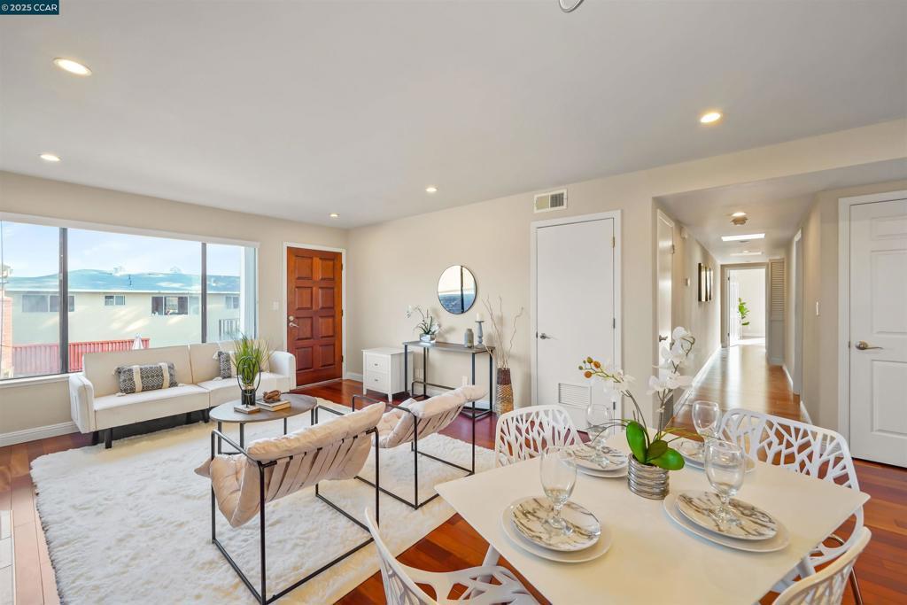 Welcome to this charming 2-bedroom, 2-bathroom condo that perfectly balances modern convenience with thoughtful design. Spanning 1,158 square feet, this delightfully appointed residence offers an intelligent layout that maximizes every inch of living space while maintaining an airy, welcoming atmosphere. The heart of this home beckons with its well-conceived floor plan, where the primary bedroom provides a serene retreat alongside a secondary bedroom that adapts beautifully to your lifestyle needs. Two full bathrooms ensure morning routines flow smoothly, while the thoughtful configuration creates natural privacy zones throughout. Indoor laundry. Step outside to discover your own private deck, an enchanting outdoor sanctuary perfect for morning coffee contemplation or evening entertainment with friends. Convenience takes center stage with dedicated parking. The surrounding neighborhood radiates charm and practicality, placing you within easy reach of essential amenities. Safeway sits just minutes away for grocery runs. Transportation connectivity shines with Hayward Park train station and El Camino Real bus stops providing seamless access to the broader Bay Area. Whether commuting to work or exploring weekend adventures, your gateway awaits just moments from you doorsteps.