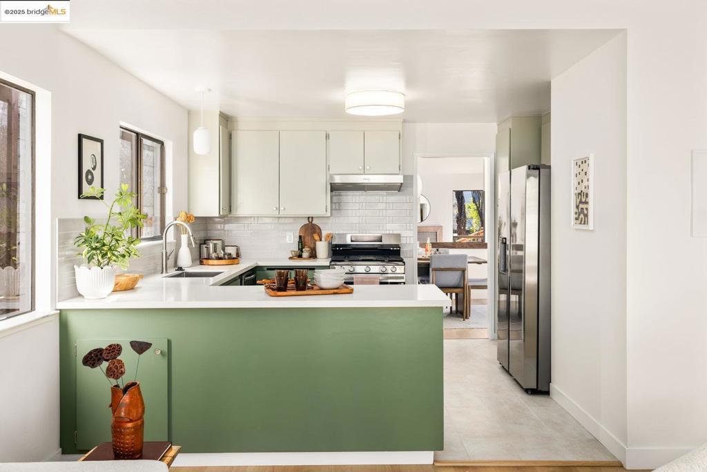 This split-level 3-bedroom, 2-bathroom home showcases classic mid-century geometry, high vaulted ceilings, and an easy, spacious flow. Sunlight moves through the home throughout the day, highlighting a formal dining room, a comfortable living room, and multiple versatile bonus spaces suited for work, play, or quiet retreat. Recent improvements of the property include remodeled bathrooms, an updated kitchen, fresh interior and exterior paint, a new roof, and a generous rear deck and landscaping (all completed in 2025). The flexible 2,173 square foot floor plan* sits on a 5,208 square foot lot* offering an impressive sense of space with purposeful level outdoor areas ideal for entertaining, dining, or cultivating an edible landscape. The result is a warm and welcoming home that blends architectural character with modern livability in a setting enriched by the neighborhood's mature greenery and close proximity to Wildcat Canyon and Tilden Regional Park.