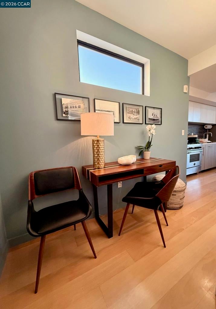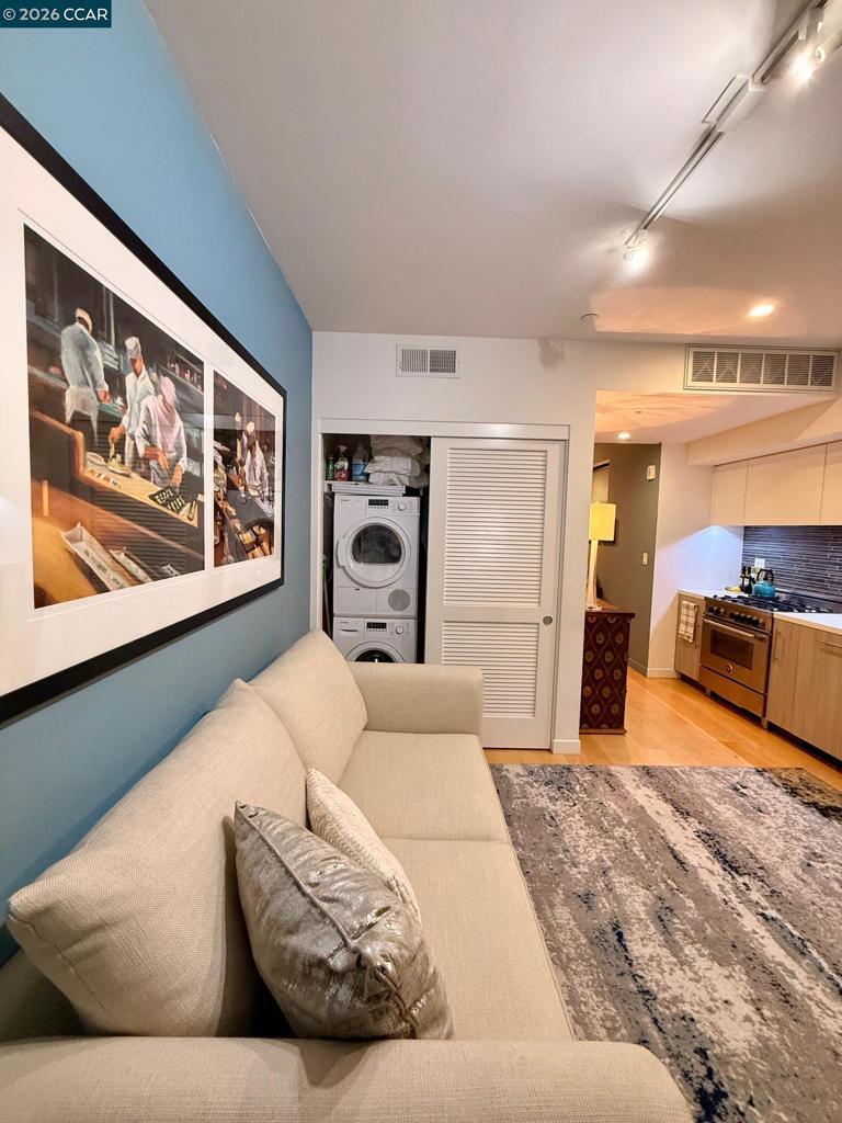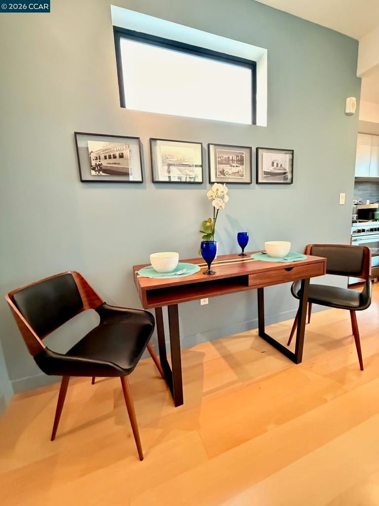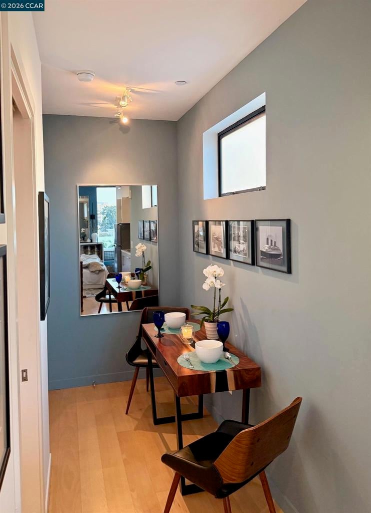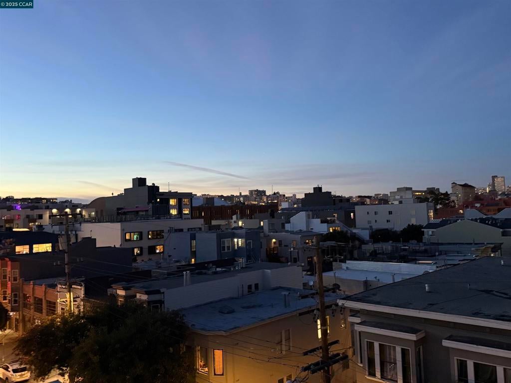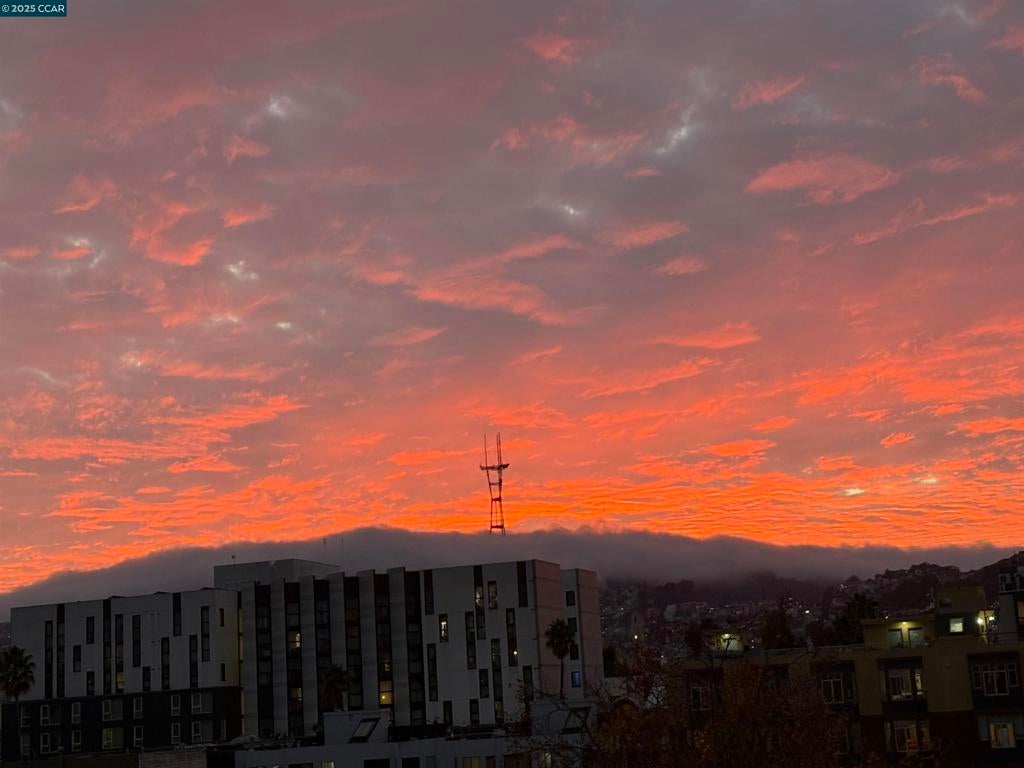 Join us 0n Sunday. Enjoy sweeping Downtown, Bay, and Twin Peaks views from a VERY RARE private balcony (only 2 units in the building have their own terrace) for dining, drinks, game playing or simply just to relax. Fabulous modern top-floor studio at the "Fifteen Fifteen", designed by renowned architect Stanley Saitowitz. This stylish light-filled end unit features 9’ ceilings, wide-plank hardwood floors, Bosch/Thermador appliances, Caesarstone countertops, SOZO Studio cabinetry, and a spa-like bath with Grohe fixtures and Italian porcelain flooring. Additional highlights include central A/C, in-unit laundry, a large storage unit, and a secure, professionally managed building. Built in 2014. Prime Mission District location close to restaurants, cafés, shops, galleries, transit, and easy freeway access. Available fully furnished as shown including full kitchen set up, smart TV and dvd player, washer dryer, bed and bath. Views: Downtown