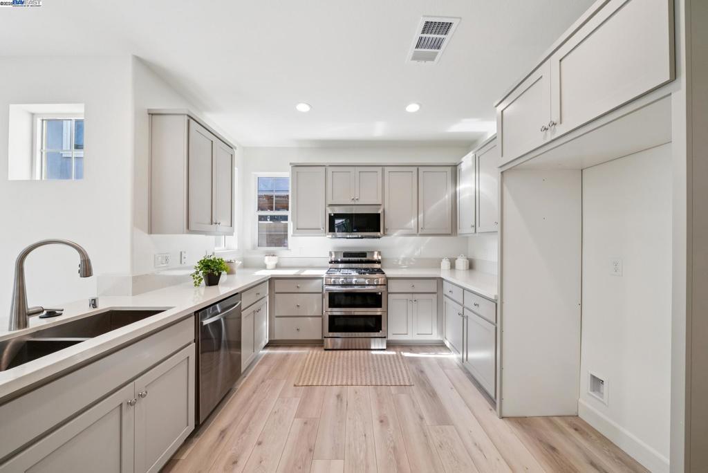 Discover exceptional new construction in a private tucked away location! This Plan is our Baxer floor plan - a spacious 5 bed, 3.5 bath home offering 2,487 sq ft of stylish living space. This beautifully designed home features a downstairs Junior ADU studio with its own private entrance, bedroom, full bathroom, kitchenette, separate HVAC, and laundry area which is perfect for guests, rental income, or multi-generational living. Upstairs, the primary suite offers a private retreat with spa-like bath and generous walk-in closet. Thoughtful upgrades and Solar have been included in this home-Don't miss out! These homes offer the perfect blend of suburban charm and urban convenience. Situated less than one mile from both the BART station and Highway 4, and with easy access to Interstate 680, Liberty II provides unparalleled connectivity for seamless commutes throughout the Bay Area. Positioned between Concord, Clayton, and Antioch, Pittsburg combines a rich history, a diverse community, and a prime location, making this neighborhood an ideal choice for buyers seeking convenience, accessibility, and a welcoming lifestyle. Photo's are for example only house may vary in extrerior style,color and intertior finishes.