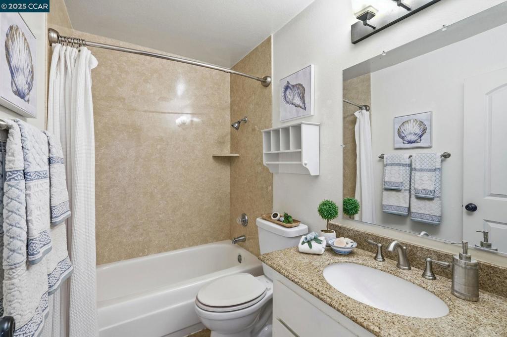 Welcome to this beautifully updated Concord condo offering modern comfort in an unbeatable location near the Walnut Creek border. This spacious two-bedroom, one-bath home features an expansive living room, dedicated dining area, and a generous private balcony—perfect for morning coffee or relaxing outdoors. The modern kitchen includes butcher-block countertops, abundant cabinet space, stainless steel appliances, and a built-in microwave that maximizes workspace. A peninsula with bar-style seating opens the kitchen to the dining area to the main living area, creating an inviting flow for everyday living and entertaining. Both bedrooms are well sized with brand-new carpet, new paint, plantation shutters and ample closet space. Additional features include, new dual pane windows and lots of storage. The well-maintained community offers landscaped grounds, a refreshing pool, and two assigned covered parking spaces. Minutes from De La Salle and Carondelet High Schools, Trader Joe’s, shopping, BART, and freeway access, this home blends convenience, comfort, and value. Move-in ready—don’t miss this opportunity!